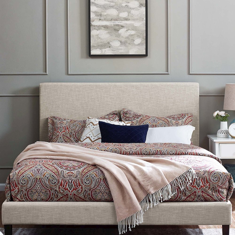 Modway Taylor King and California King Upholstered Linen Fabric Headboard in Beige