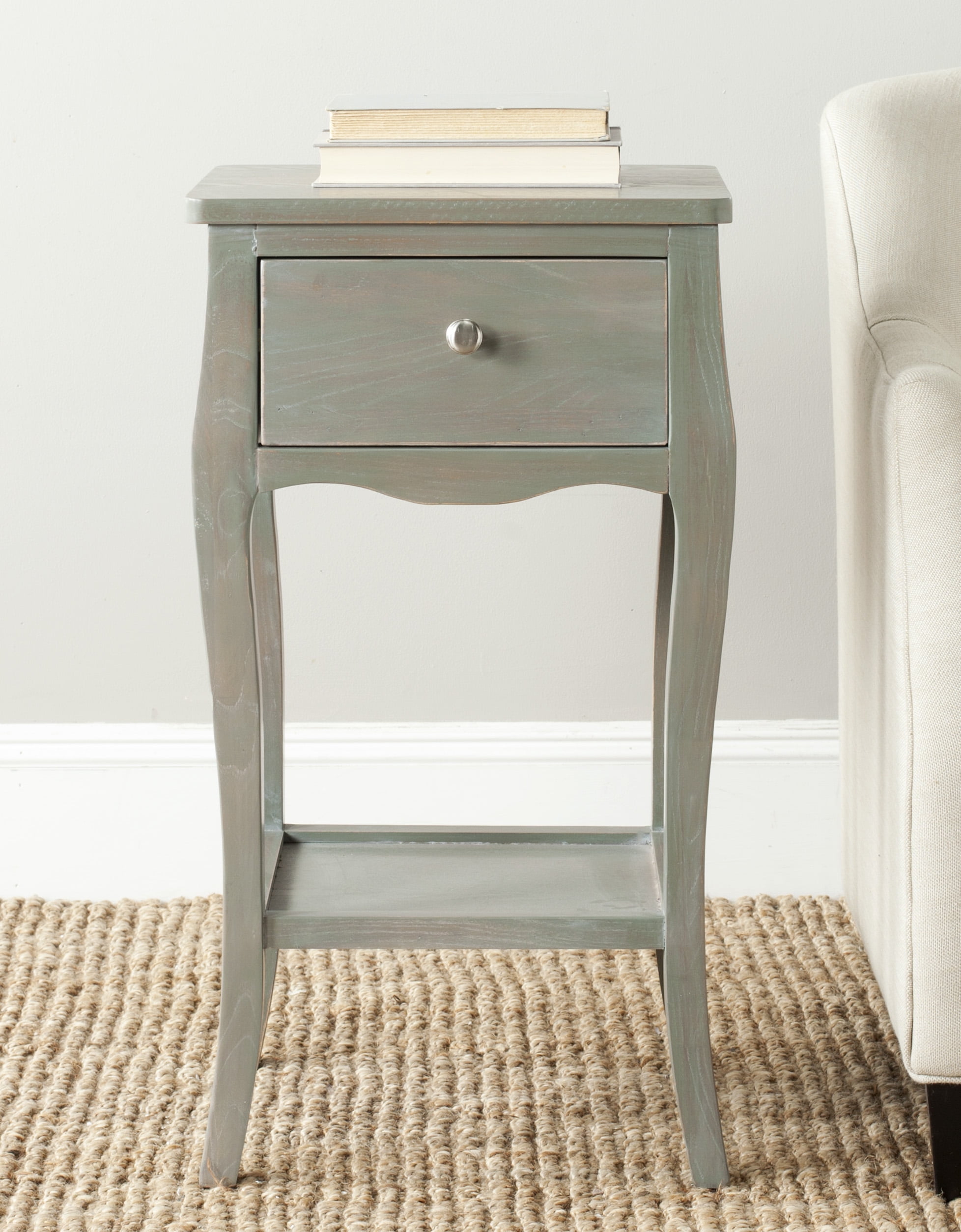 Harness the iconic energy of mid-century style with the Transmit Nightstand. Transmit features a full-extension white lacquer drawer with abundant storage, durable particleboard with smooth walnut grain laminate and four tapered wood legs. Display your favorite bedroom reading lamp, phone, keys, glasses, book, journal, and alarm clock on this contemporary nightstand. Transmit is also popularly used in the living room. Features: Materials: Particleboard Finish: Walnut, white Full-extension glide drawer Smooth wood grain laminate White lacquer drawer Splayed and tapered legs Specifications: Product Dimensions: 15.5″H x 19″W x 15.5″D Product Weight: 22 lbs