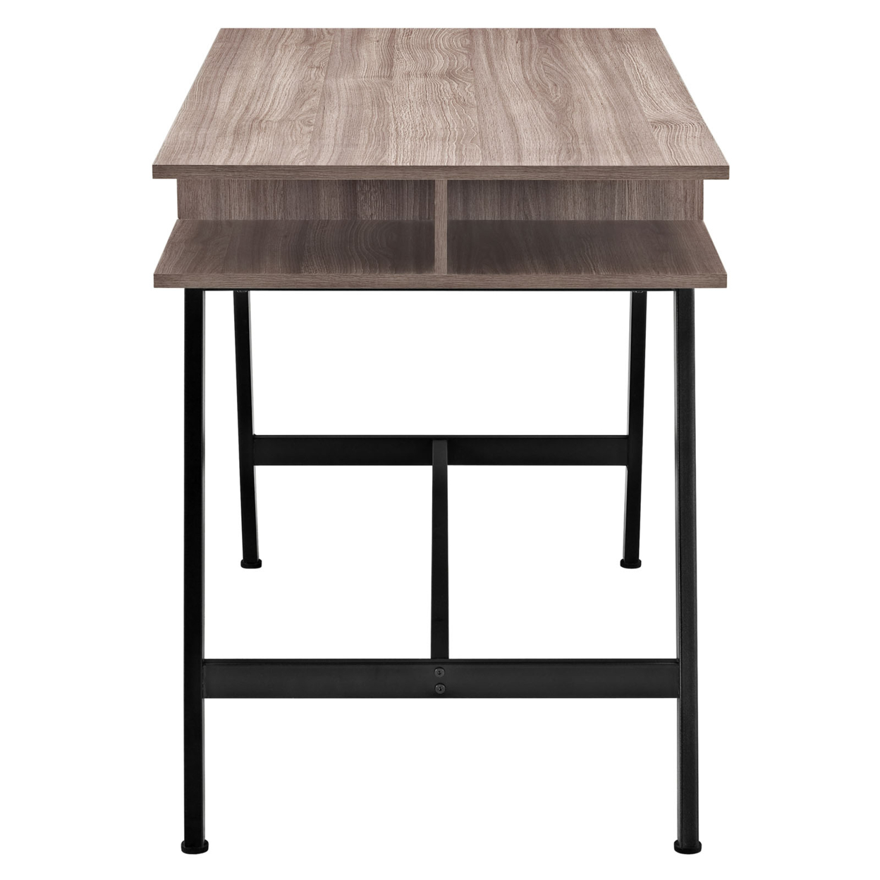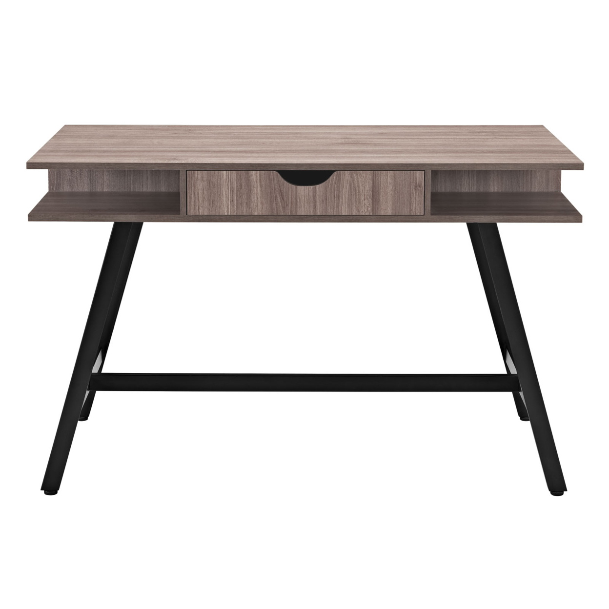CONTEMPORARY STYLE – Refresh your work space with a computer desk that features a modern aesthetic for a laptop, supplies, or table lamp. Elevate office décor with this contemporary writing surface SPACIOUS STORAGE – Let productivity flow with focused organization. Five open cubby compartments and a pull-out drawer are perfect for pens, papers, books, home accessories and other office essentials MODERN USAGE – Whether situated in a home office space, study, bedroom, living room, entryway, or dorm room, versatility abounds with Turnabout. Work inspired amidst a liberated modern writing table NATURAL WOOD GRAIN – Sturdy for daily use, Turnabout complements home or apartment décor with a wood grain melamine table top that sits on a steel metal base. Adjustable foot glides ensure steadiness OFFICE DESK MEASUREMENTS – Complement a variety of office surroundings including contemporary, modern, rustic, industrial, and farmhouse styles with Turnabout. Product Dimensions: 23.5″L x 47″W x 30″H