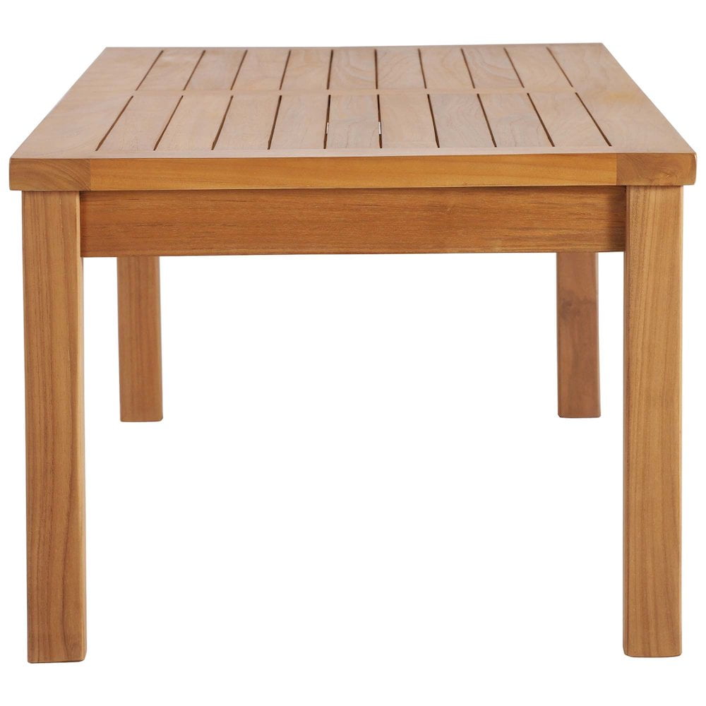 Material: Solid teak wood Finish: Natural Modern outdoor teak coffee table Richly textured wood grain