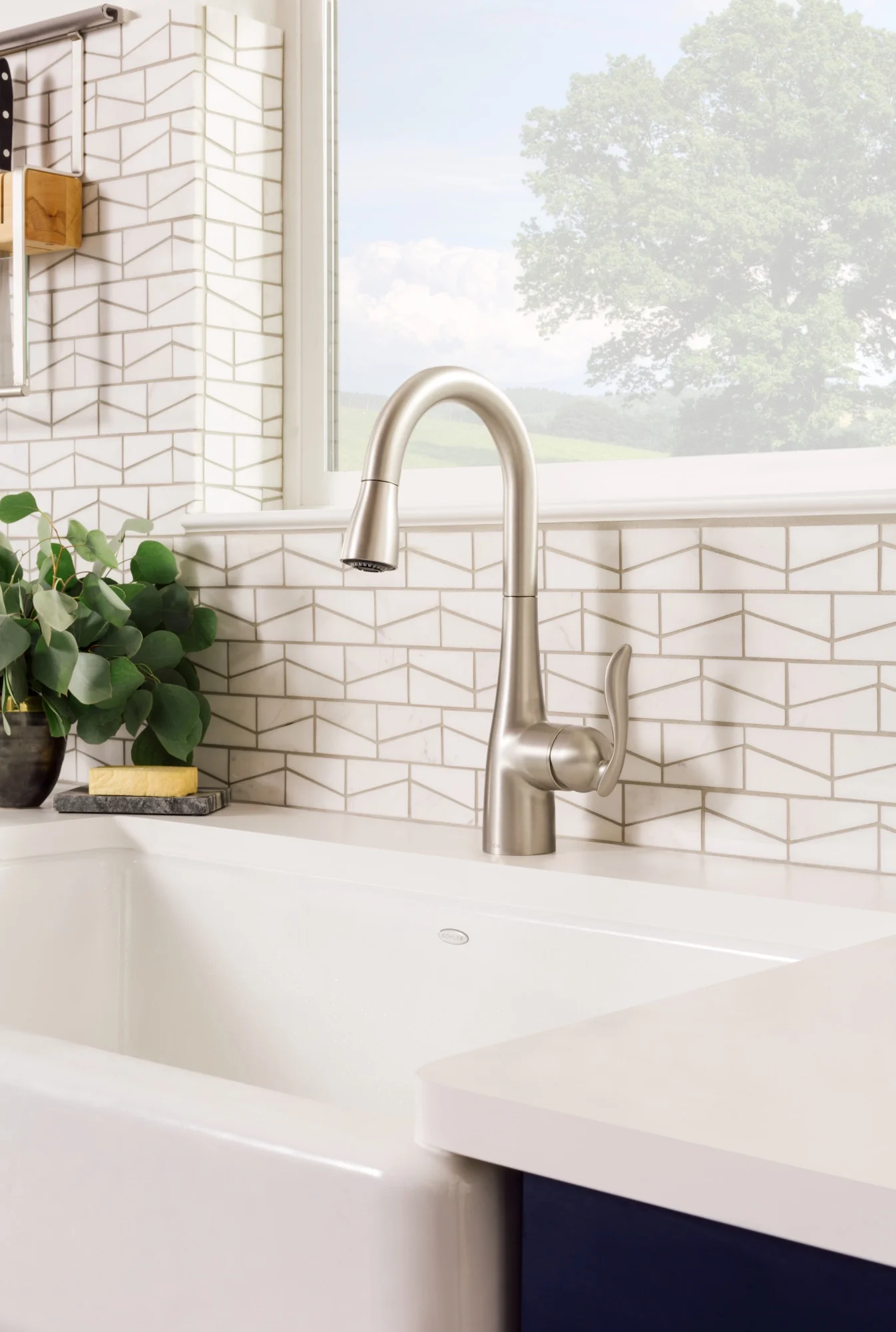 Desription Arbor is filled with smooth profiles, slight flairs, and subtle curves. Arbor’s smooth profile is tailored to perfection. The slight flair of the handle and the curve of the spout make this a Transitional look that works with a variety of decorating styles. Features: matte black finish is the perfect complement to modern spaces ™ technology provides 50 percent more versus most of our pulldown and pullout faucets without the ™ technology. equipped with the Reflex(TM) system for smooth operation, easy movement and secure docking of the pulldown/pullout faucet pulldown hose offers flexible water delivery and hose retracts with ease Specifications: Manufacturer Warranty: Finish:Matte Black