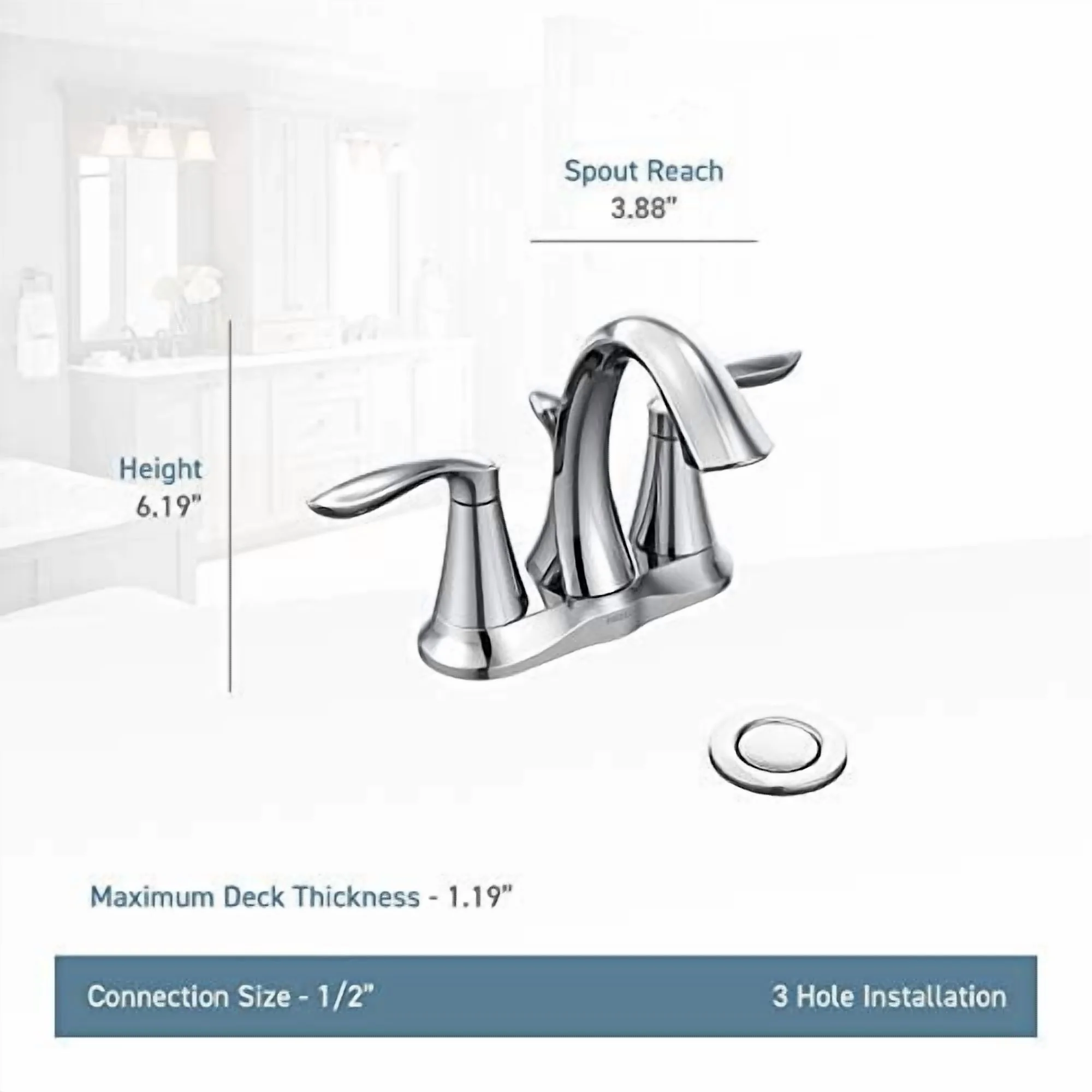 Easy-to use 2-handle lever design 4-inch center set design allows for easy installation ADA compliant Aerated flow for everyday use Available in a variety of finishes Overall dimensions: 4L x 10W x 6.18H inches Manufacturer provides limited lifetime warranty