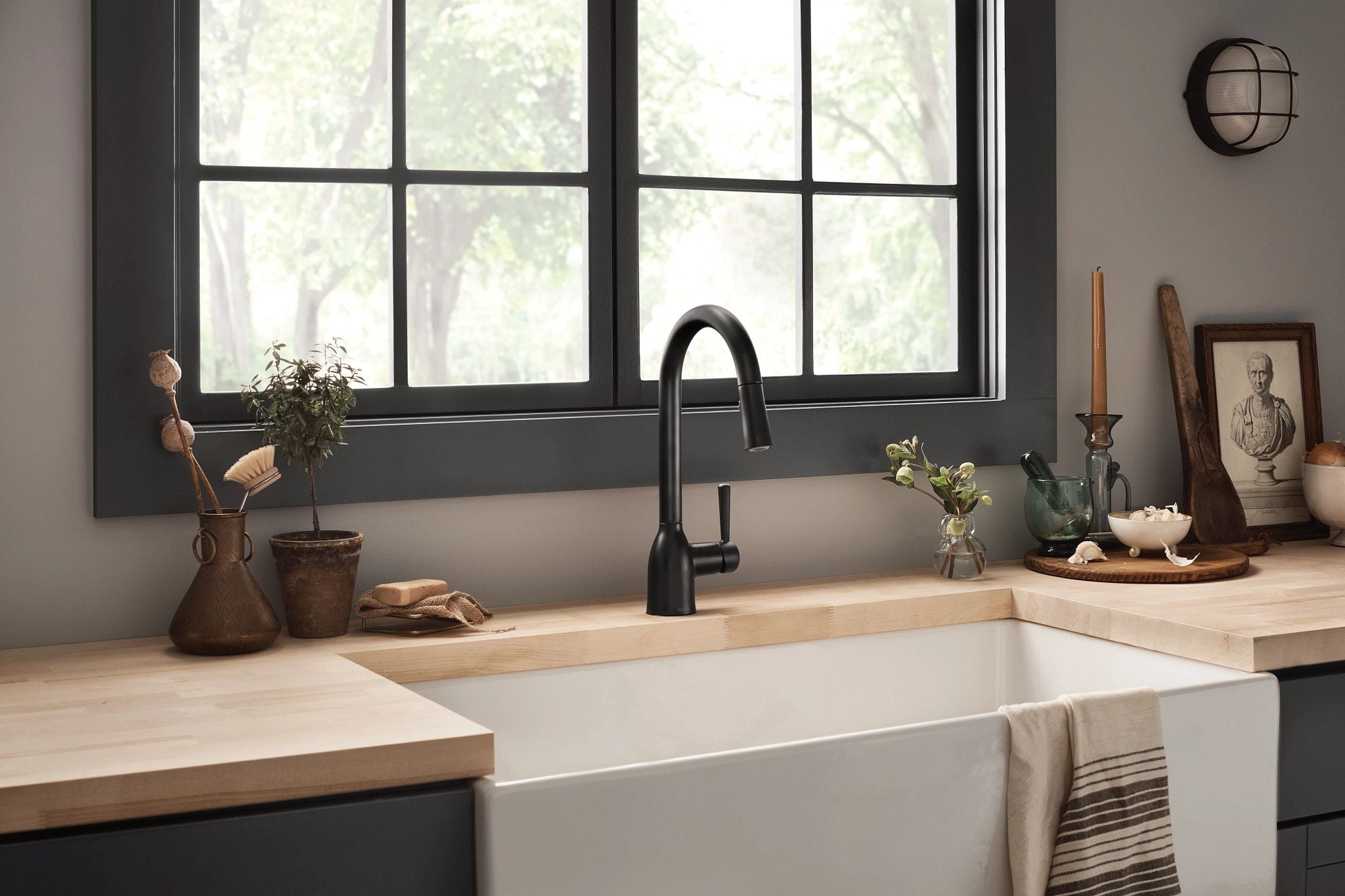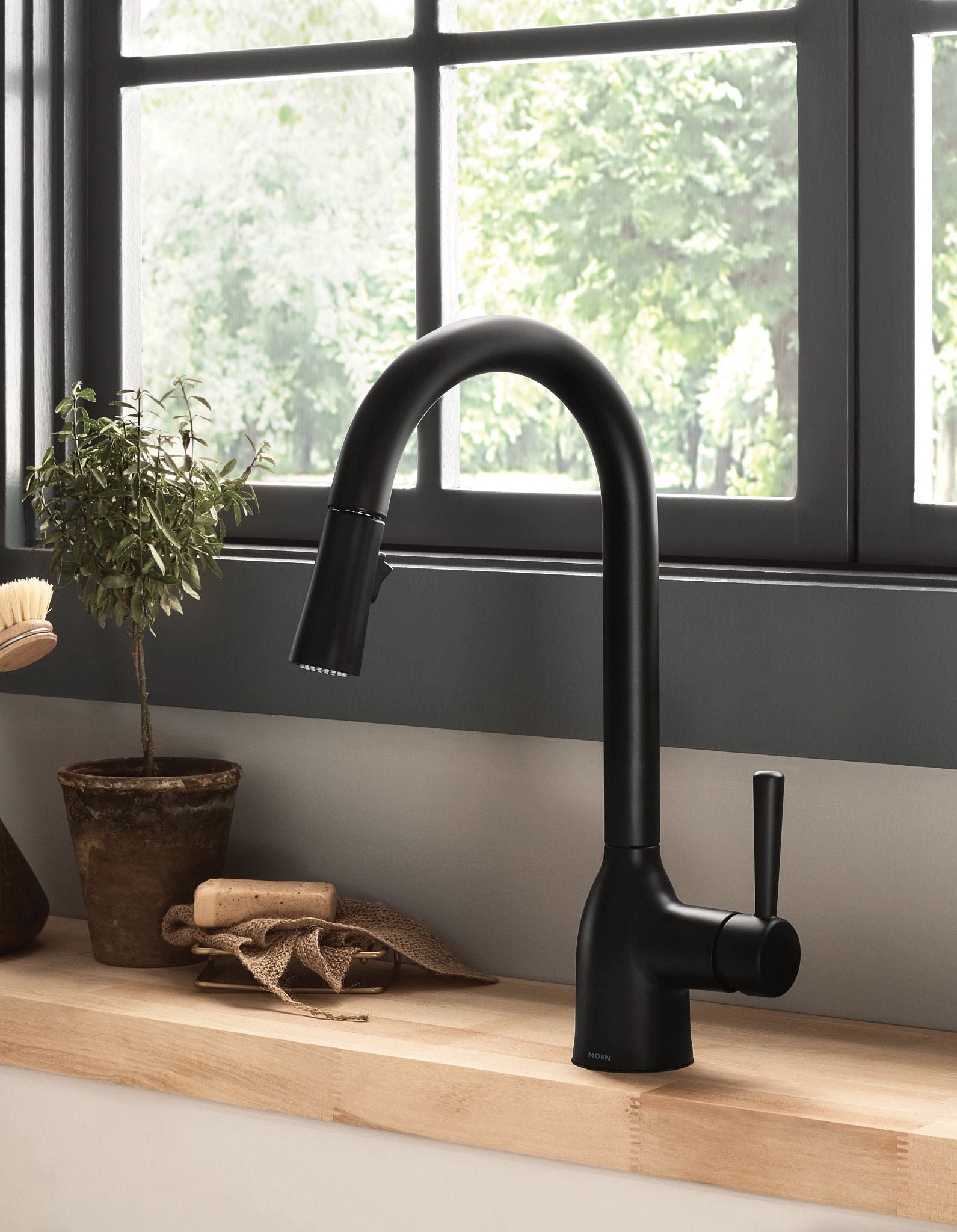Moen Adler Matte Black Single Hole One-Handle Pull Down Kitchen Faucet, 87233BL