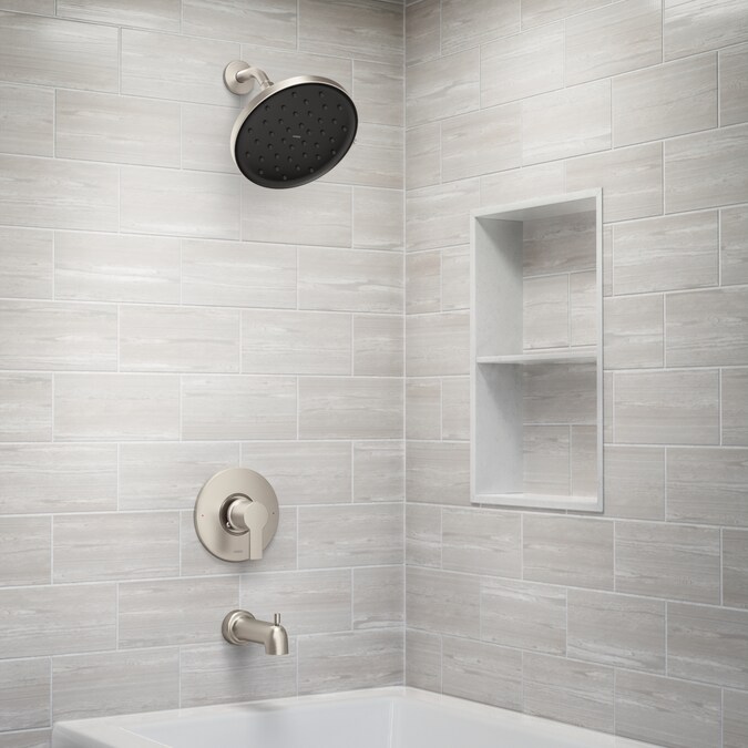 The flowing arcs and smooth edges of Avri™ bring a soft, luxe, modern design to any bathroom. The Avri tub shower includes the Verso™ Rainshower with Magnetix™, which easily detaches from the shower arm for simple cleaning and has Infiniti Dial™ for a customizable shower experience with limitless spray pressure and coverage options. In addition, it comes in Moen’s exclusive Spot Resist® Brushed Nickel, which resists fingerprints and water spots to maintain the brilliance of the fixture. All Avri tub shower products are also EPA WaterSense® certified.