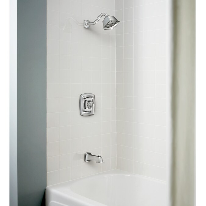 - Chrome finish tub and shower faucet from the Boardwalk collection