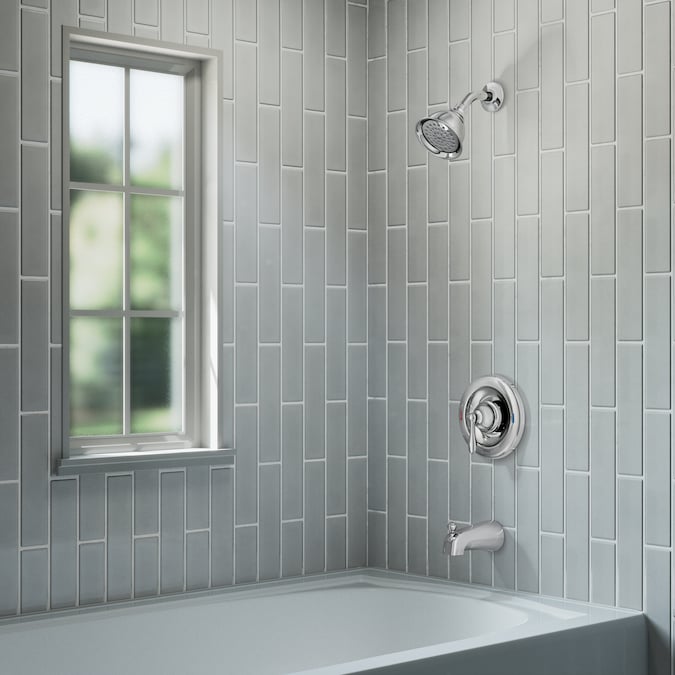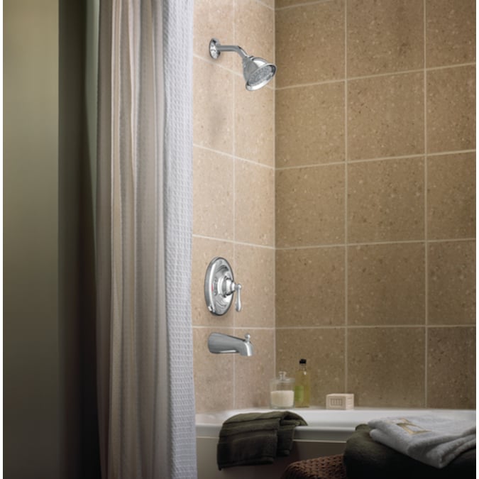 Soften the look of your shower with the gentle curves and classic style of the Moen Caldwell Posi-Temp® Tub and Shower. The trim features a 4-inch shower head, a single lever handle, and Moen’s Posi-Temp® pressure-balancing valve to help ensure a consistent water temperature throughout your shower. Designed for conservation and convenience, the shower trim meets both Americans with Disabilities Act (ADA) specifications for easy use and EPA WaterSense criteria for water efficiency that doesn’t affect water pressure. Update your space with the ageless design of the Moen Caldwell Posi-Temp® Tub and Shower.