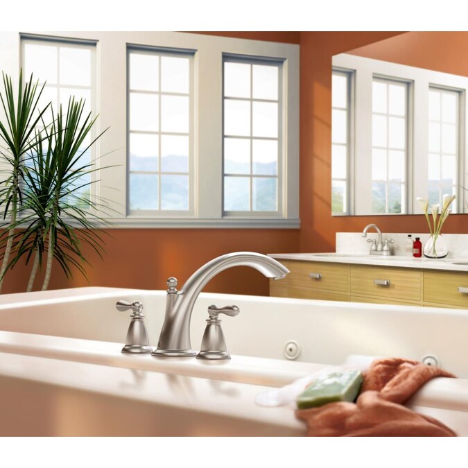 Give your tub a dazzling shimmer with this Moen bathtub faucet from the Caldwell collection. Its Spot Resist® Brushed Nickel finish resists fingerprints and water spots. The faucet’s high-arc spout and two-handle lever design make it ADA-compliant so it’s easier and more comfortable for the physically-impaired. You’ll benefit by having the rough-in valve and trim included for your convenience. It’s the perfect way to give your bathtub a fresh, clean look.