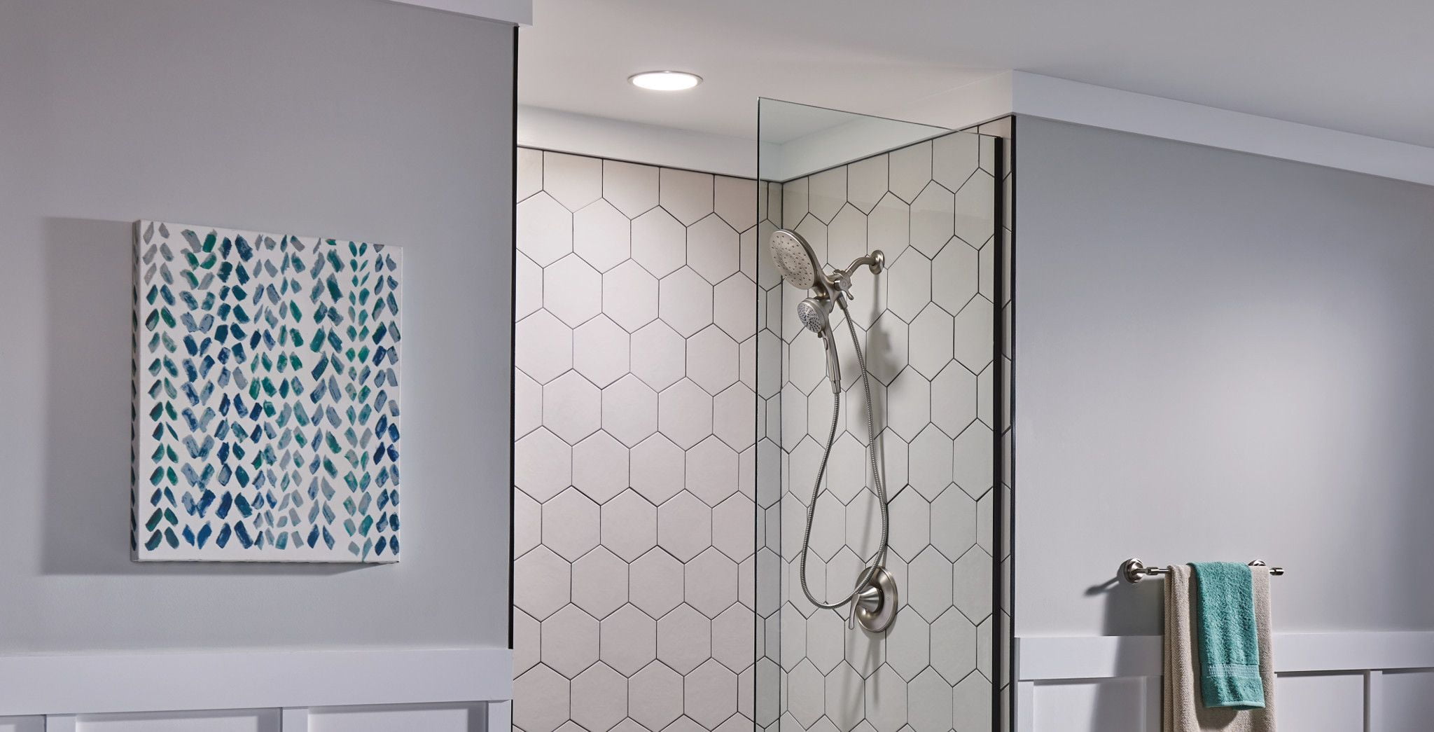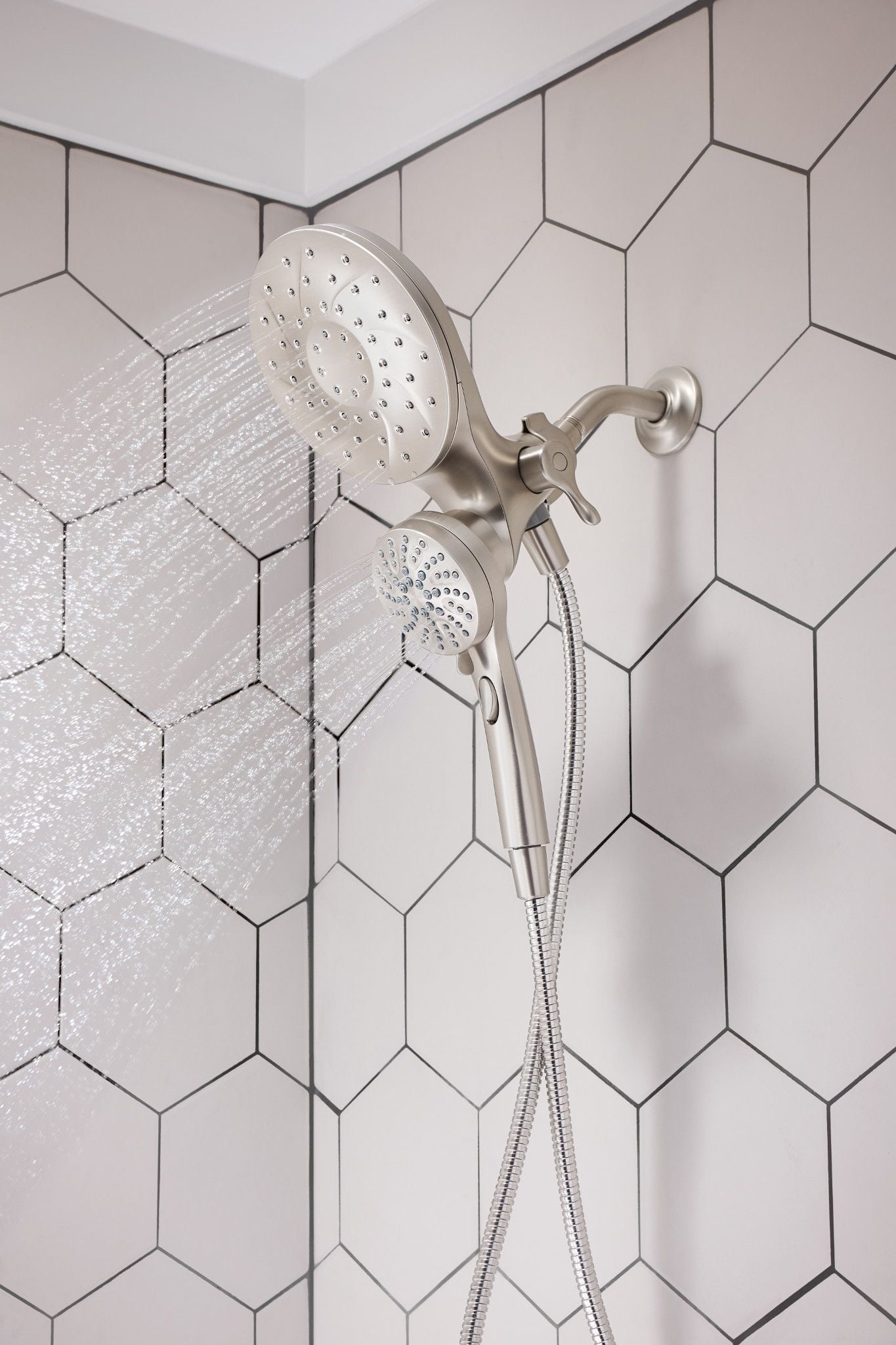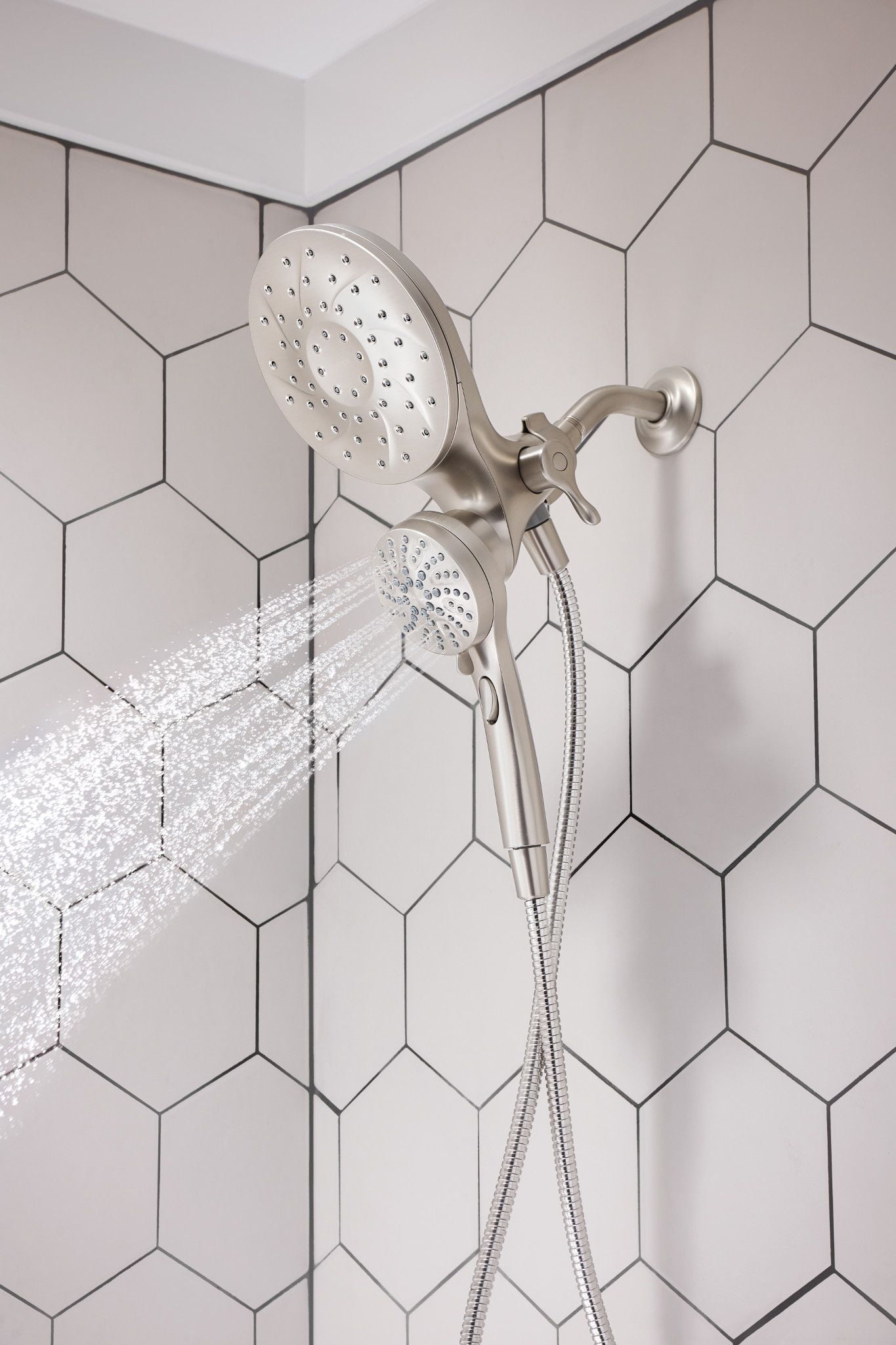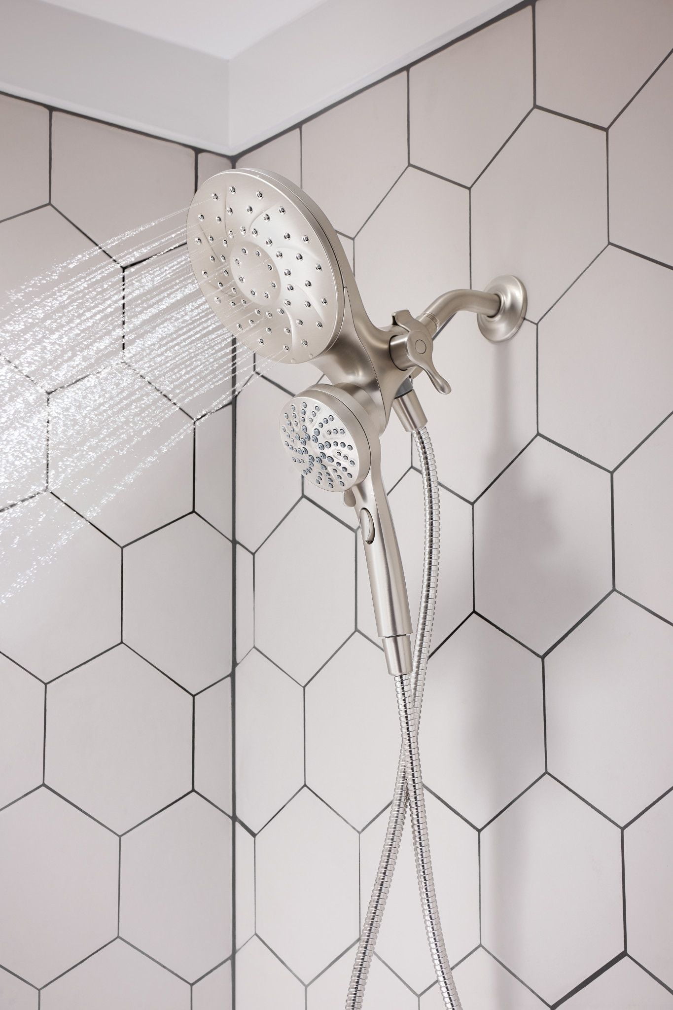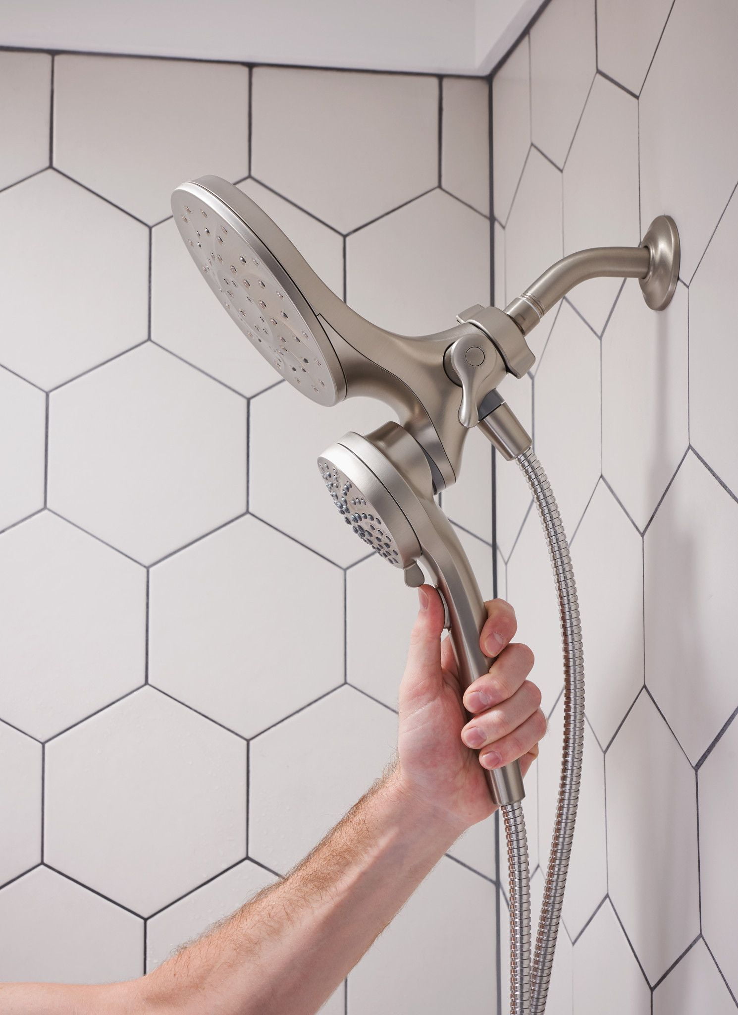 Spot Resist Nickel finish resists fingerprints and water spots for a cleaner looking bath The magnetic docking system allows you to easily detach and use as a handheld shower head or effortlessly replace it to dock with the snap of a magnet Multiple distinct shower settings gives flexibility and variety Features a 60″ kink-free metal hose that extends reach and flexibility Six-function pause, wide coverage, downpour, relaxing massage, massage, soothing massage, rinse Includes rain shower, hand shower, hose and magnetic docking system Limited 5 Year Warranty