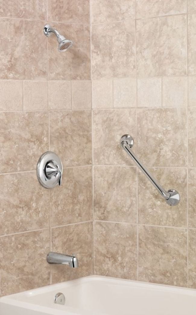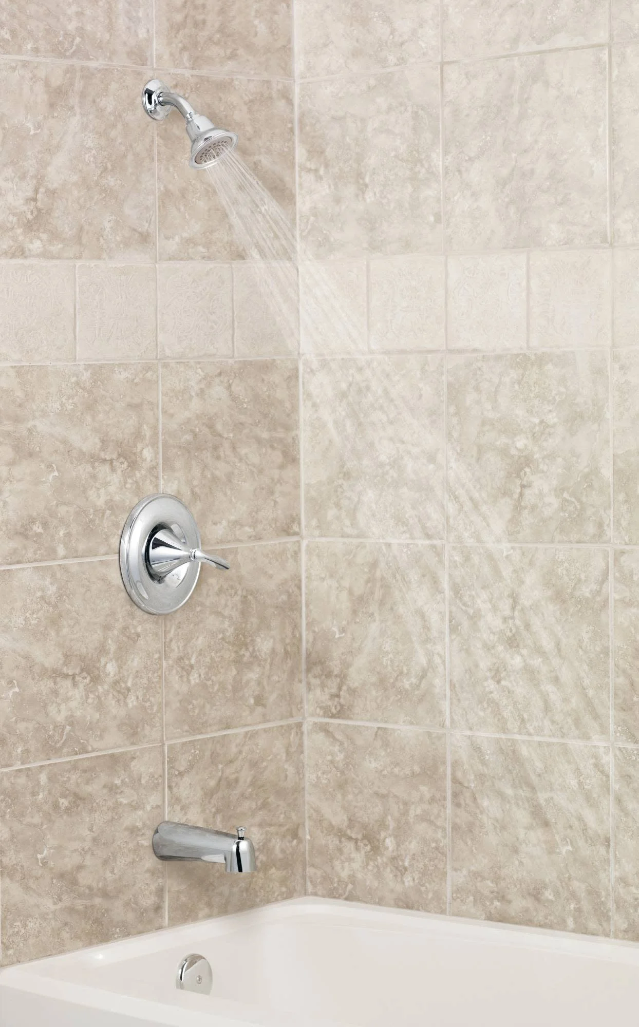 ADA compliant Features PosiTemp pressure-balancing valve PosiTemp valve maintains water pressure/controls temperature Includes a single functional showerhead and 7-in. tub spout Available in a variety of finishes Overall dimensions: 7.5 diam. x 3.87 in. Manufacturer provides limited lifetime warranty