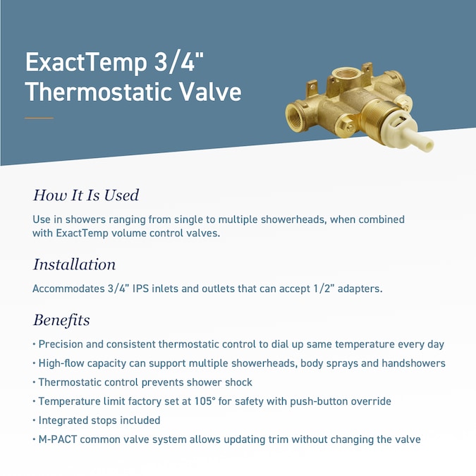 - Built on the Moen M–PACT common valve system, allowing you to update the faucet style in the future without replacing any plumbing