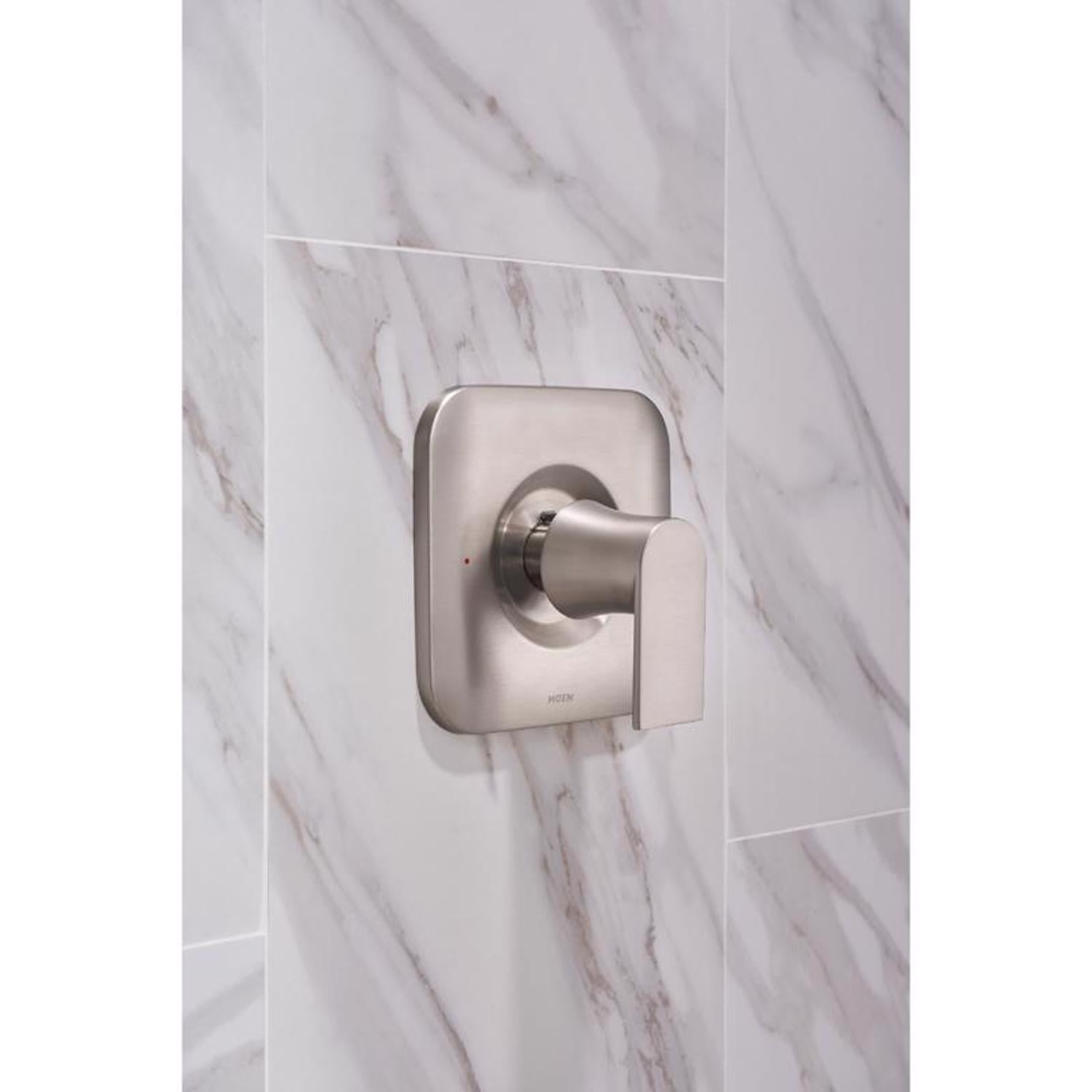 Spot resist brushed nickel finish avoids fingertips and water spots for a cleaner look Equipped with the PosiTemp pressure-balancing control valve to help maintain water temperature in the shower Built on the Moen M-Pact common valve system, allowing you to update the faucet style in the future without replacing any plumbing Complies with Americans with disabilities act (ADA) specifications Meets EPA WaterSense criteria to conserve water without sacrificing performance 1/2 in. IPS or CC compatible Posi-Temp pressure balancing valve included