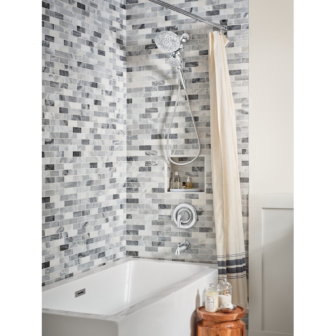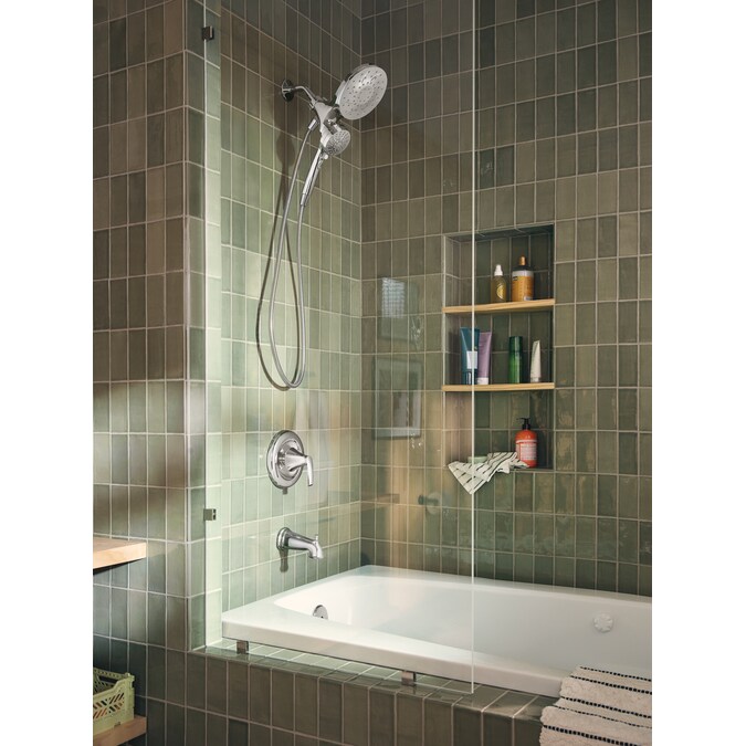 The Graeden™ Tub and Shower Faucet offers an effortless showering experience, featuring magnetic docking, smooth lines, and a sleek, transitional design. It’s equipped with six shower settings and three showering configurations — use the showerheads separately or together for maximum coverage. The showerhead also features Moen’s Magnetix® magnetic docking technology, so it’s easy to release and return the handshower – even with your eyes closed. Available in a bold, reflective Chrome finish that seamlessly melds with any design aesthetic.