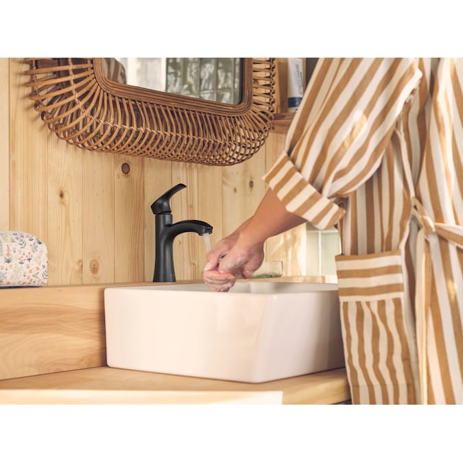 Smooth lines and an extended spout make the Graeden sigle handle lav Bath faucet the focal point of any space. With its Transitionally styled features, Graeden offers a sleek look that seamlessly blends into a number of different design aesthetics. Graeden is available in Matte Black, a contemporary, yet surprisingly neutral, black finish.