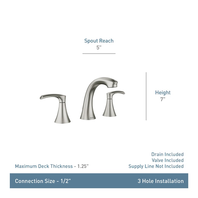 Smooth lines and an extended spout make the Graeden centerset Bath faucet the focal point of any space. With its Transitionally styled features, Graeden offers a sleek look that seamlessly blends into a number of different design aesthetics. Graeden is available in Moen’s exclusive Spot Resist Brushed Nickel finish, which resists fingerprints and water spots to maintain the fixture’s brilliance and minimize cleaning time.