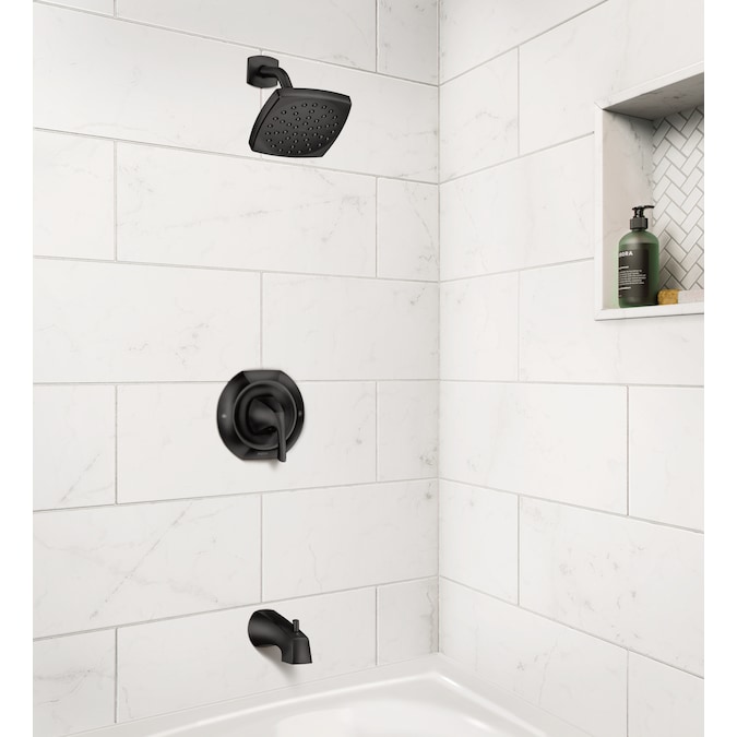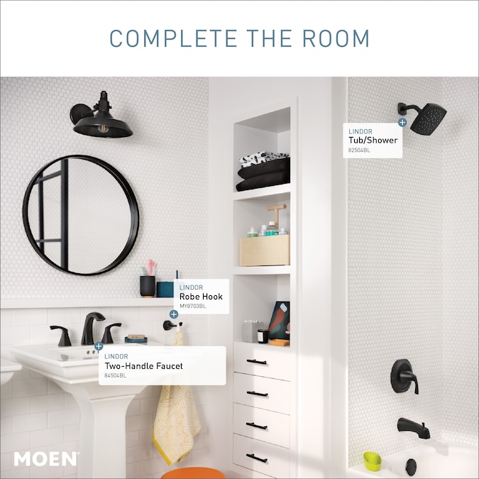 Soft curving lines and structural edges give the Lindor collection a sophisticated look that works in many transitional homes. Shop the full Lindor collection—from faucets to towel rings—to give your bath full coordinated and stylish appeal. Tub and shower faucet kit includes threaded tub spout, shower head, shower arm, flange, handle, handle adapter kit, and escutcheon.