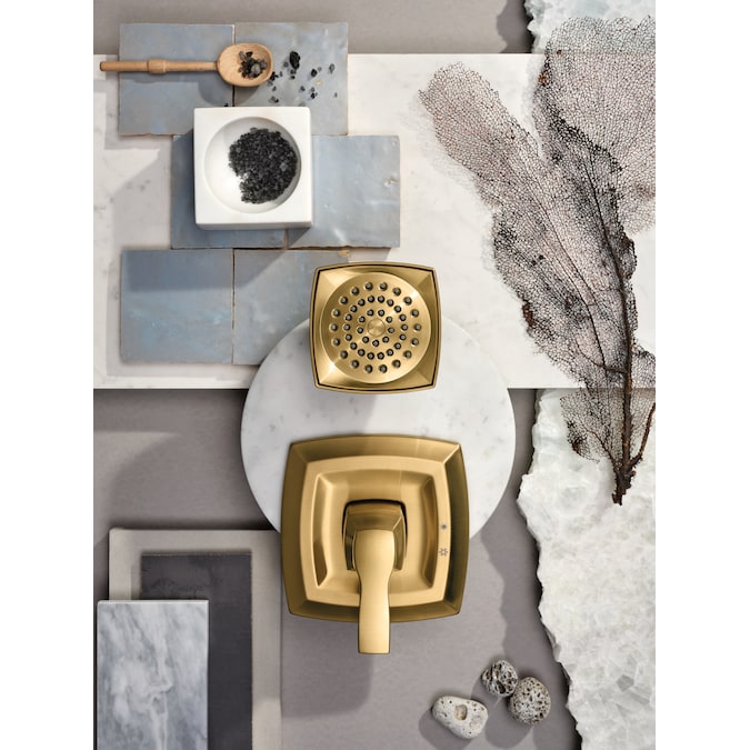 Crisp edges and uncomplicated style features give the Voss collection an ageless, yet fashion-forward, presence. Each silhouette brings a confident transitional style to the bath. This brushed gold Posi-Temp valve trim was built to last by MOEN. Designed for use in your bath. This trim kit requires MOEN valve 2510, 2520, 2570, 2580, or 2590 to complete installation.
