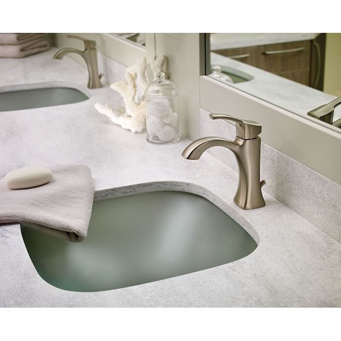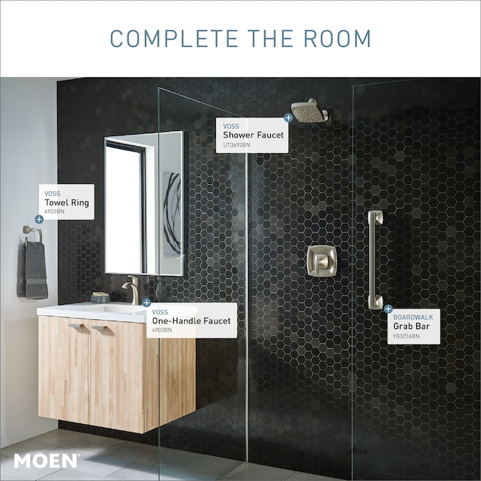 Featuring crisp edges and an elegant design, the MOEN Voss Single Hole Single Handle High-Arc Bathroom Faucet boasts an ageless, yet fashion-forward, presence. Its unique silhouette brings a confident transitional style to your bathroom to accent your overall space. Offering a beautiful brushed nickel finish that offers long-lasting shine, this bathroom faucet was built to last and will serve as the perfect complement to your decor.