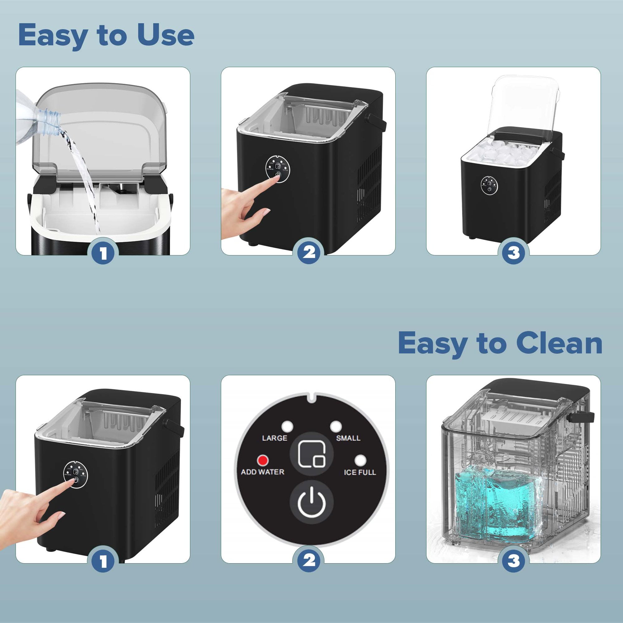 ????Rapid Ice Production: The Moifoi Countertop Ice Maker is incredibly efficient. It can churn out 8 bullet – shaped ice cubes in just 9 minutes and produce a whopping 26 pounds of ice within 24 hours. These bullet – shaped ice cubes cool your drinks in no time, providing an instant refreshing chill. ????Customizable Ice Sizes: Tailor your ice experience with the LHRIVER ice maker. It offers two sizes of bullet ice cubes to cater to your diverse needs. Simply press the “S/L” button on the control panel, and you’ll get the perfect – sized ice cubes for your drinks. ????Compact and Portable Design: Measuring 10.59(L)×8.07(W)×11.10(H) inches, the LHRIVER ice maker is a compact powerhouse. It’s easy to carry around, making it suitable for a wide range of occasions, whether it’s at home, in a bar, at a party, or even during camping trips. ????User – Friendly Smart Control Panel: Save time and effort with the LHRIVER ice maker’s smart control panel. With just a few simple steps, you can have a cold, refreshing drink in your hands. It simplifies the process of making ice, ensuring a convenient experience. ????Convenient Self – Cleaning Function: Maintaining your LHRIVER ice maker is a breeze. Plug in the power, press and hold the START/STOP button for 3 seconds, and the machine activates its self – cleaning function. During this process, the four lights flash alternately. Just remember not to disconnect the power supply for a thorough clean.