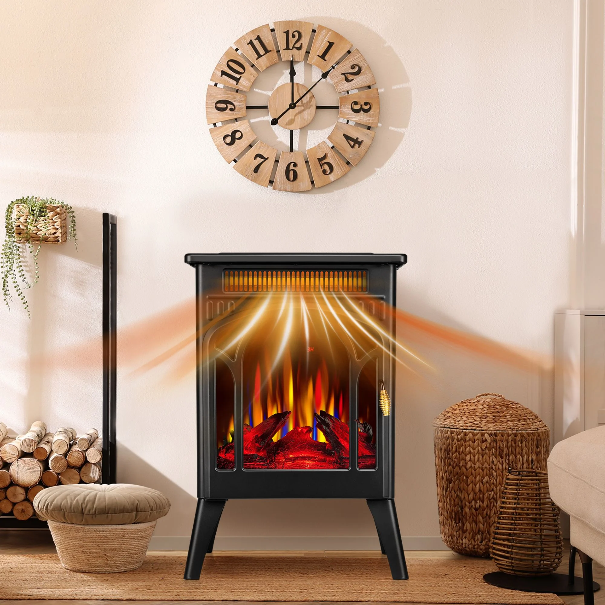 This compact and portable electric fireplace from Moifoi offers a realistic 3D flame effect with adjustable color and brightness, allowing you to enjoy a warm and cozy atmosphere year-round. The 1500W heating capacity can warm spaces up to 300 sq ft, while the overheating protection and bottom air outlet ensure safe operation. With a retro-inspired design, this freestanding fireplace is perfect for modern interiors, and the included remote control makes it easy to control the flame and heat settings. Backed by a 1-year warranty, this electric fireplace is a stylish and practical addition to any home.