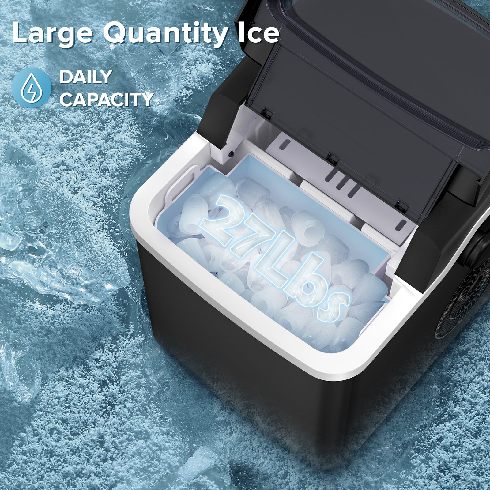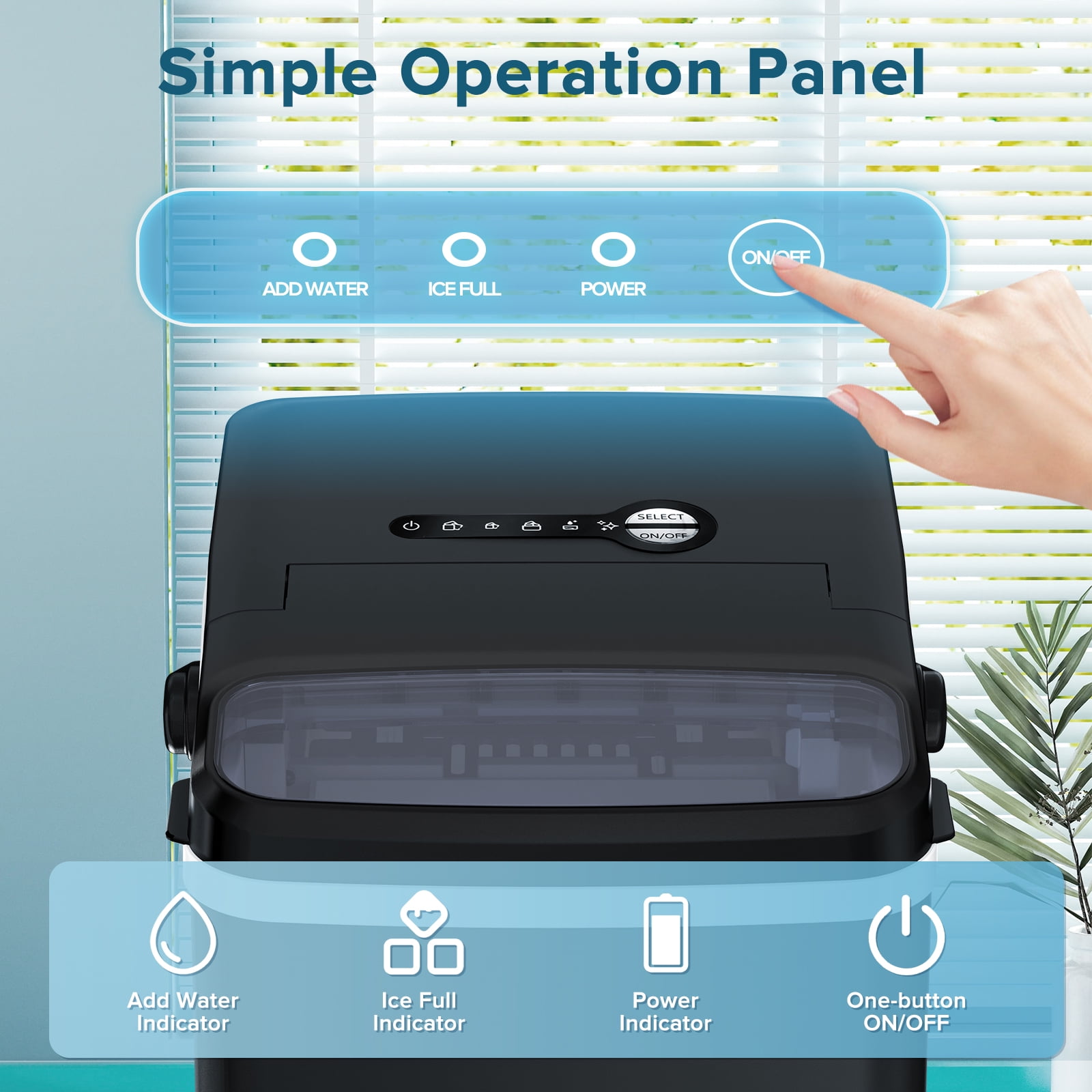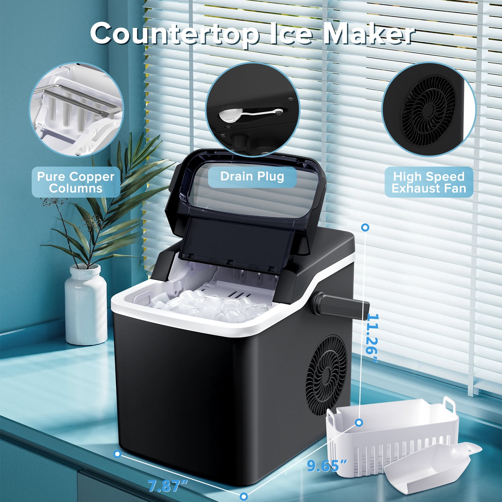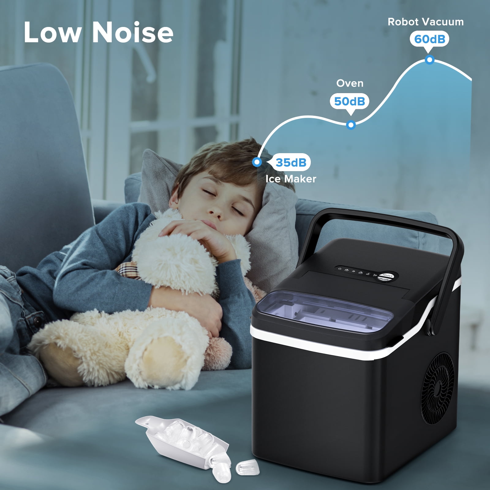 Moifoi Portable Ice Maker Countertop with Handle, 26Lbs/24H, 9Pcs/8Mins, Self-Cleaning , Black