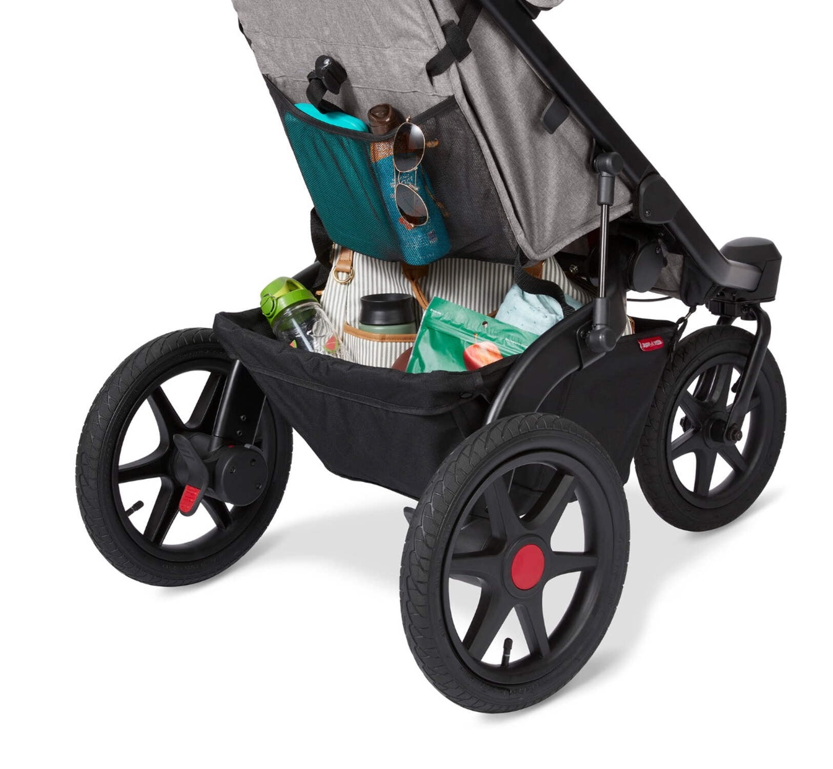 Whether you run every day or enjoy casual strolls around the neighborhood, the Momentum Jogging Stroller makes any adventure a breeze. The stroller has two steering modes: Run with a locked front wheel or Walk with a swivel front wheel. When you want to turn while in Run mode, Quick Switch® Steering allows for on-demand steering – simply twist the handlebar to unlock the front wheel to turn without missing a beat. The handlebar also features a comfort grip, wrist strap for safety while jogging, and is height adjustable. The convenient one-hand fold allows easy storage, and this unique folding mechanism allows this jogging stroller to fold more compactly than others. Thoughtful child features include a reclining seat, 5-point safety harness, internal snack pouches, and an extendable canopy with a peek-a-boo mesh window. The extra-large storage basket provides ample space for diaper bags or backpacks. The basket also features a zippered pocket to keep smaller items safely stowed away. Maximum weight capacity 50 lbs. Recommended for kids 6 months and up. Product net content 1 each.