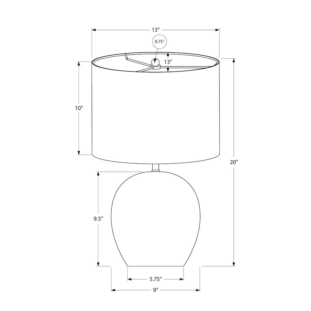 This stylish and fashionable 20″H table lamp with a gray concrete globe-shaped base and topped with a contrasting ivory linen drum shade, is the perfect accent to brighten any room. Featuring a 3-way switch holding a single bulb (not included) with an output of 100W/120V, allows you to customize the lighting ambiance in your living room, home office, or bedroom. With a contemporary appeal, place this versatile decorative lamp on a side or end table, on a console, or on your nightstand to create a warm and inviting atmosphere. Made with durable quality materials ensuring longevity, this lamp includes a 2 year limited warranty against any manufacturer’s defects for a worry-free purchase. Features: Material: Concrete stone Finish: Gray, ivory Attached with a 6ft transparent cord, place this versatile lamp on any end or side table, a nightstand or bedside table for a fashionable lighting source. Minor assembly is required with illustrated instructions included. This lamp is made with durable materials and backed with 2-year limited warranty against manufacturer’s defects for your satisfaction. Illuminate your living room, home office, or bedroom with this globe shaped 20″h table lamp, in a textured gray concrete finish at the base and topped with a chic ivory linen drum shade for a contemporary appeal. The easy to use 3-way rotary switch holds a single bulb (not included) with a maximum outage of 100W/120V to adjust the lighting ambiance and instantly brighten or dim a room. Specifications: Product Dimensions: 20″ H x 13″ W x 13″ D Product Weight: 12 lbs Product Dimensions: (Base) 17.75″ H x 7.75″ W x 7.75″ D; (Shade) 10″ H x 16″ W x 16″ D