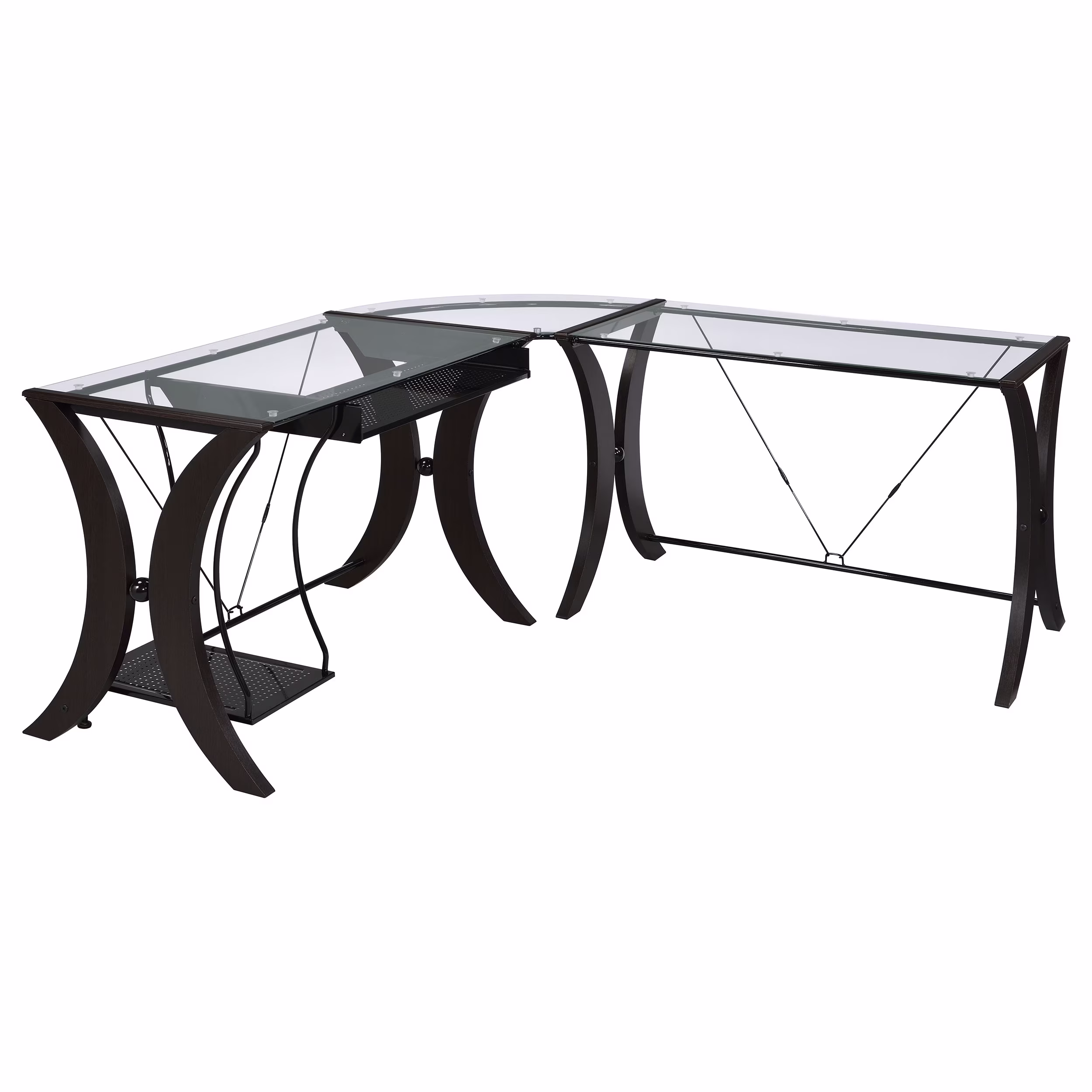 Simple contemporary design will blend well with any décor 4 fixed large open concept shelves Ample surface area for your laptop and other office accessories