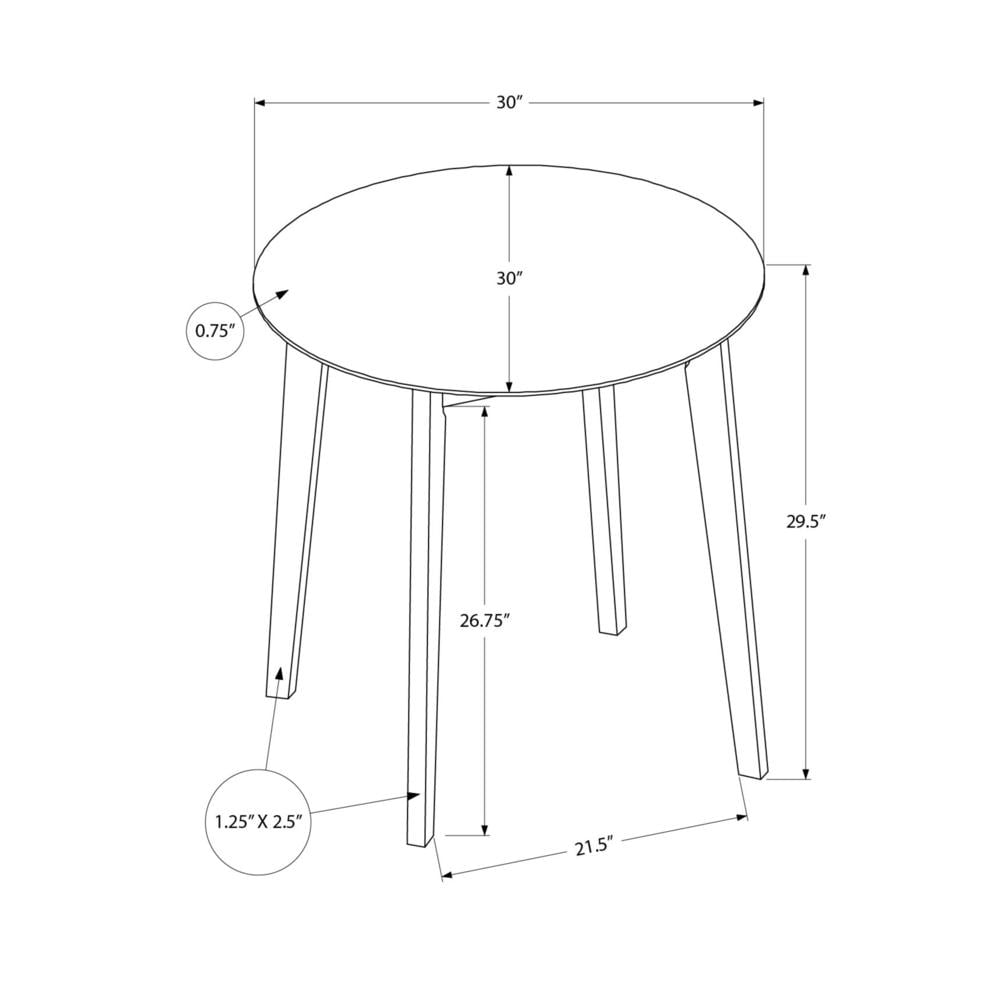 Monarch Dining Table, 30 Round, Small, Kitchen, Dining Room, White Veneer, Wood Legs
