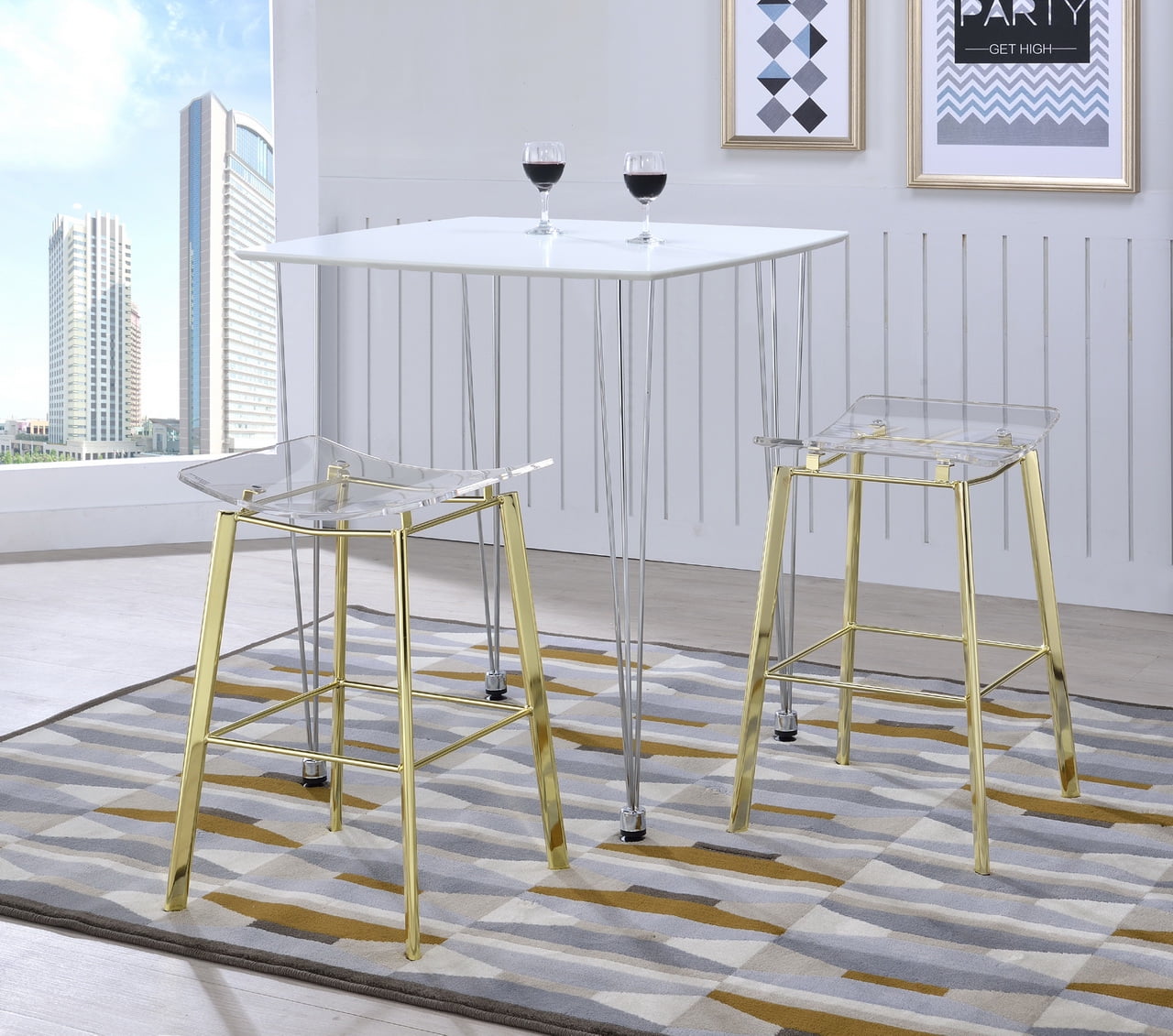 Monarch Specialties 3 Piece Modern Black Metal Dining Table Set Gray