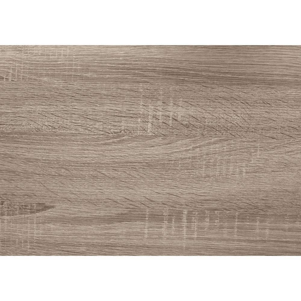 Bring a “wow” factor into your home with this impressive console table. Extra-thick panels in a dark taupe wood-look finish give this accent table its big, bold look. The long tabletop is supported by an asymmetrical base in a shape resembling the letter “W”. The thick, wedge-shaped legs and support panels of the base intersect to create two geometric-shaped openings that offer an airiness to balance the table’s hefty appearance. While this contemporary table may look substantial, its space-saving design won’t take up too much room when placed against a wall in a living room, an entryway, or a hallway. Features: Finish: Dark Taupe Material: MDF, Particle Board Edgy modern design Ample surface area for displaying pictures, decorative pieces or books Sturdy, stylish thick panel construction Bold thick asymmetrical base Perfect accent piece for an entryway, living room, hallway Specifications: Product Dimensions: 32″ H x 47″ W x 11″ D Product Weight: 55 lbs
