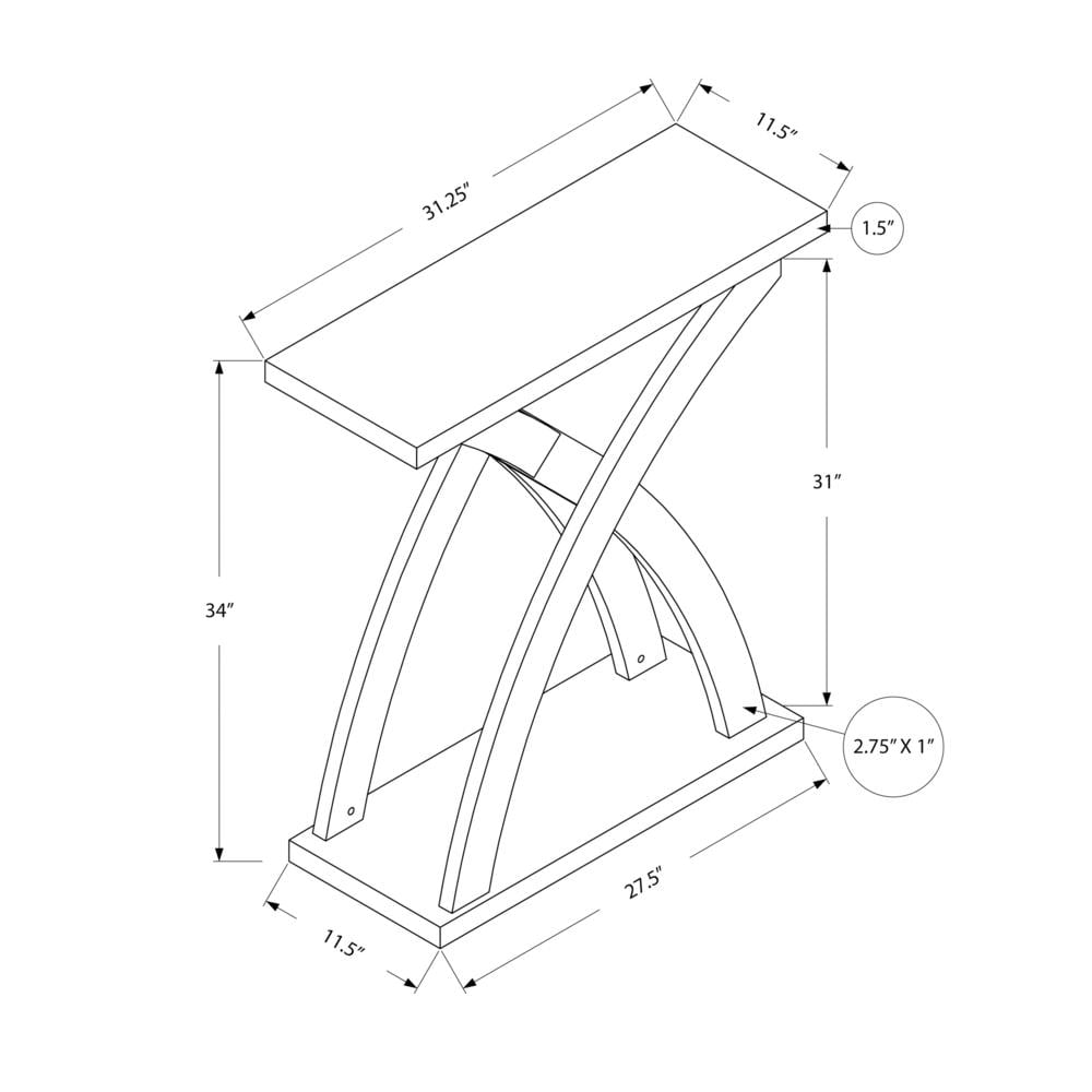 Accent Table, Console, Entryway, Narrow, Sofa, Living Room, Bedroom With a classic contemporary design this stylish console accent table in a dark espresso finish adds flare to an entryway hallway or living room. Using quality MDF material the thick and spacious rectangular tabletop is useful to showcase an artful display or simply as an elegant place to put down your keys and mail. The graceful and sturdy curved cross legs reach down to the handy bottom shelf for an additional storage or display option. The compact size also makes this console table ideal for space challenged homes while still making an eye-catching statement. Assembly is required. Elegant and contemporary console table in a classic design finished in espresso Thick and spacious table top for decorative displays, books, tray Curved leg design for an eye-catching statement Bottom shelf offers additional storage and display Compact space saver accent table for an entryway, hallway, living room – Material: Particle Board,Hollow-Core,Laminate,Mdf – Number of Pieces: 1 Pc – Style: Contemporary,Modern – Weight Capacity: 150 – Item Depth: 11.5 – Item Height: 34 – Item Dimensions: 11.5W x 31.25D x 34H – General Color: Brown – FINISHED ON ALL SIDES: YES – ITEM 1LBS: 24 – ITEM 1LENGTH: 31.25 – Vendor Color: Espresso