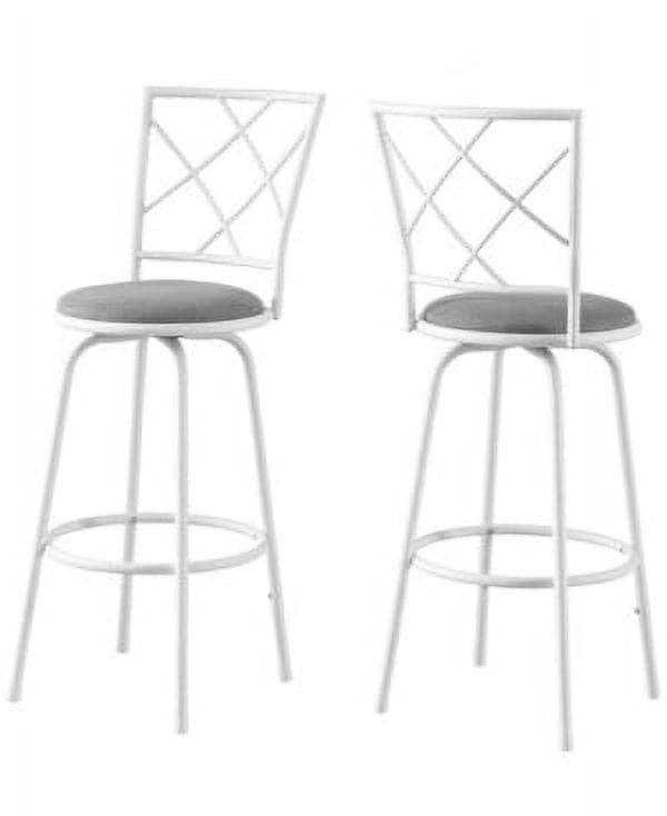 Monarch Specialties Bar Stool, Set Of 2, Swivel, Bar Height, White Metal, Grey Fabric, 44″ H, Indoor