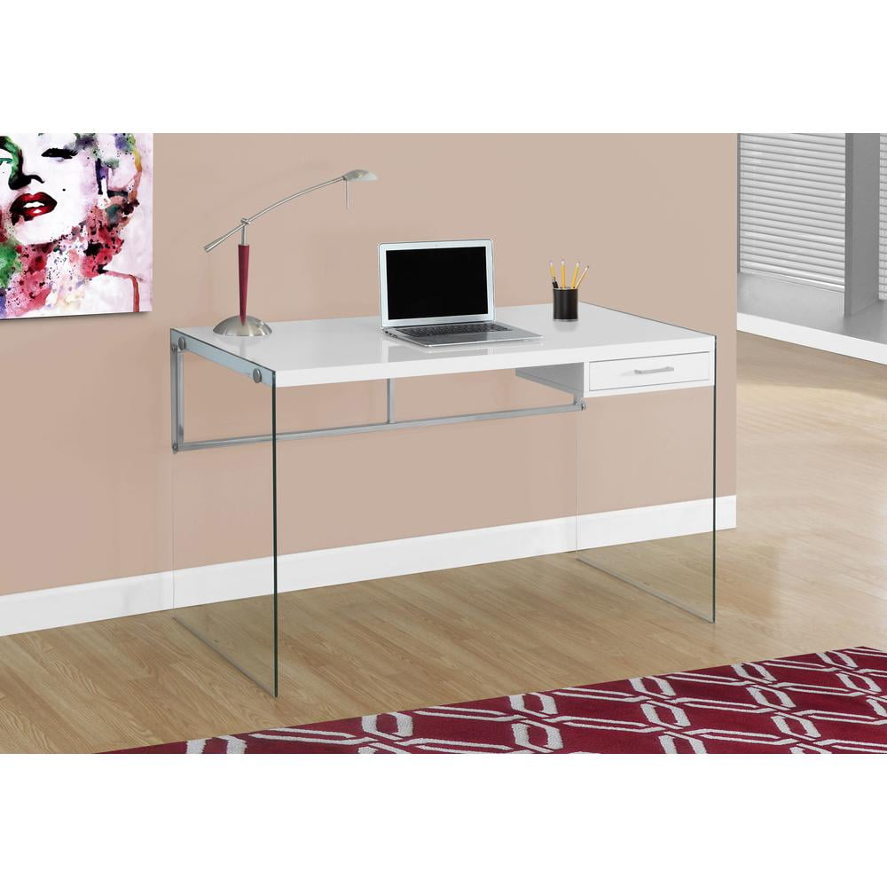Monarch Specialties Computer Desk, Home Office, Laptop, 48″L, Work, Glossy White Laminate