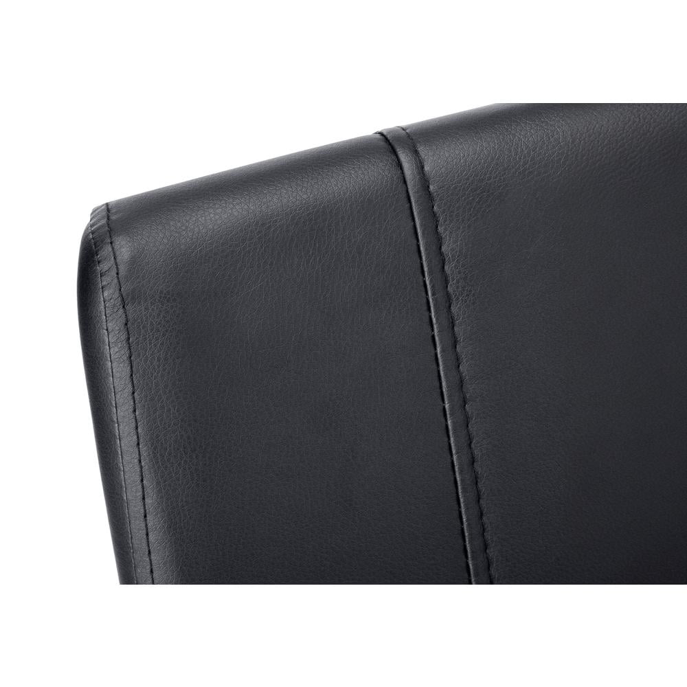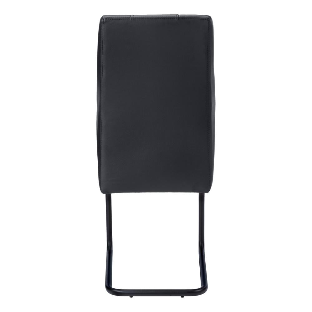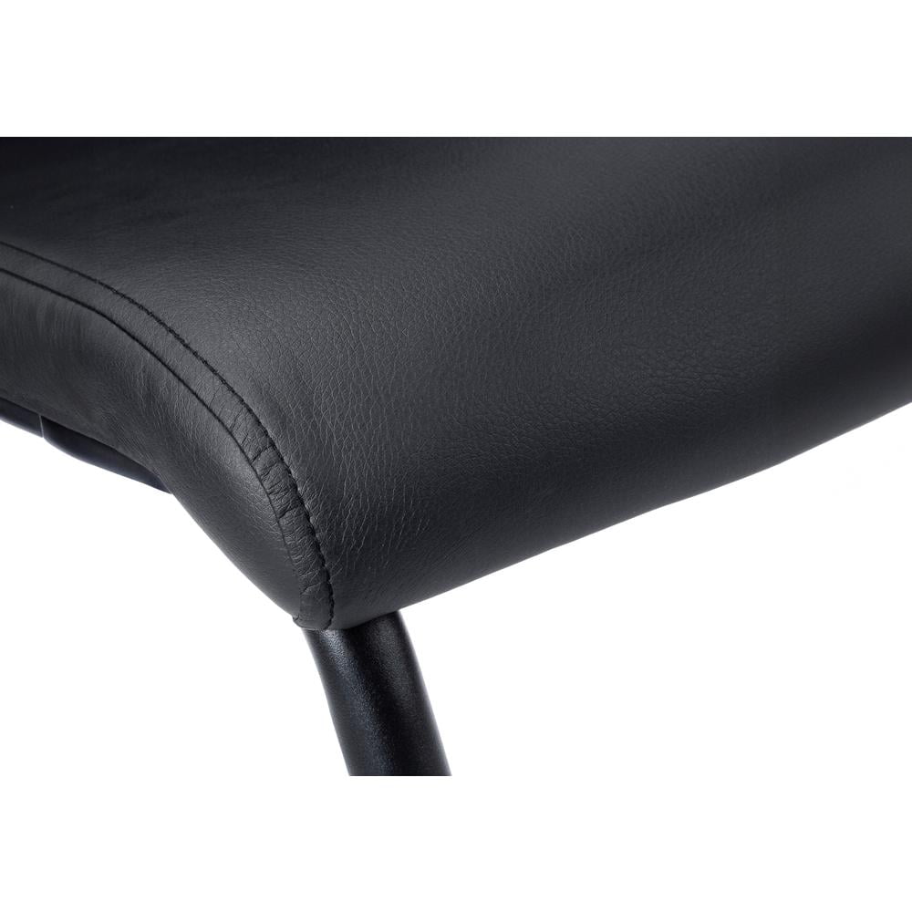 Finish: Black Material: Foam, Metal, and Leather-Look Style: Contemporary Upholstered in a durable easy to clean black leather-look material Sturdy U-shaped black metal base Thick cushioned seat and curved back Pair the chairs with a variety of modern table options for a complete look