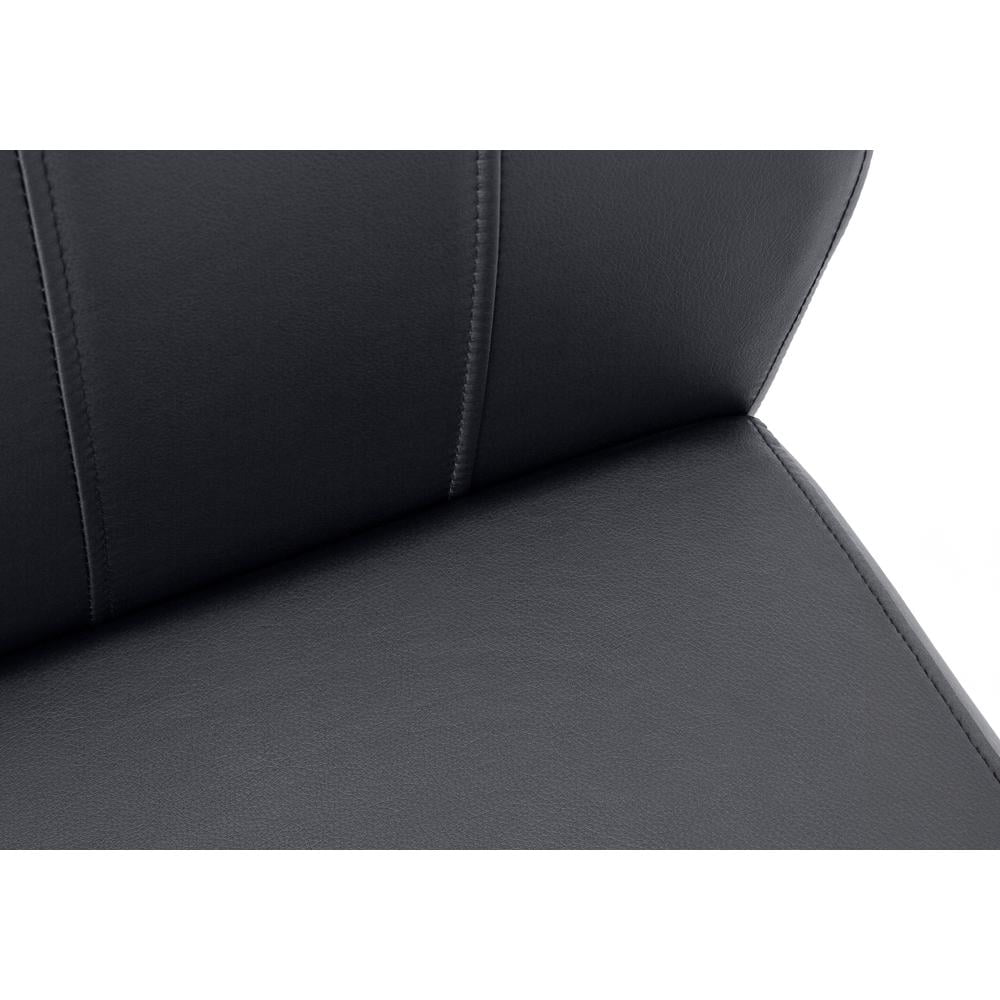 The clean modern lines of this set of 2 side dining chairs will instantly revive your dining space. The chairs are upholstered in a sleek black leather-look material. With a luxuriously comfortable curved back accented with 2 vertical rows of stitching, cushioned seat, and a sturdy U-shaped black metal base you will be dining in style in no time! Mix and match with one of our contemporary style tables to complete the set. Assembly is required. Features: Finish: Black Material: Foam, Metal, and Leather-Look Style: Contemporary Upholstered in a durable easy to clean black leather-look material Sturdy U-shaped black metal base Thick cushioned seat and curved back Pair the chairs with a variety of modern table options for a complete look Specifications: Product Dimensions: 38.75″ H x 17.25″ W x 20.25″ D Product Weight: 15 lbs Seat Dimensions: 19″ H x 17.25″ W x 18.25″ D Seat Dimensions: 2.25″ Thick Back Dimensions: 19.75″ H x 14.25″ W x 3.25″ D Weight Capacity: 200 lbs