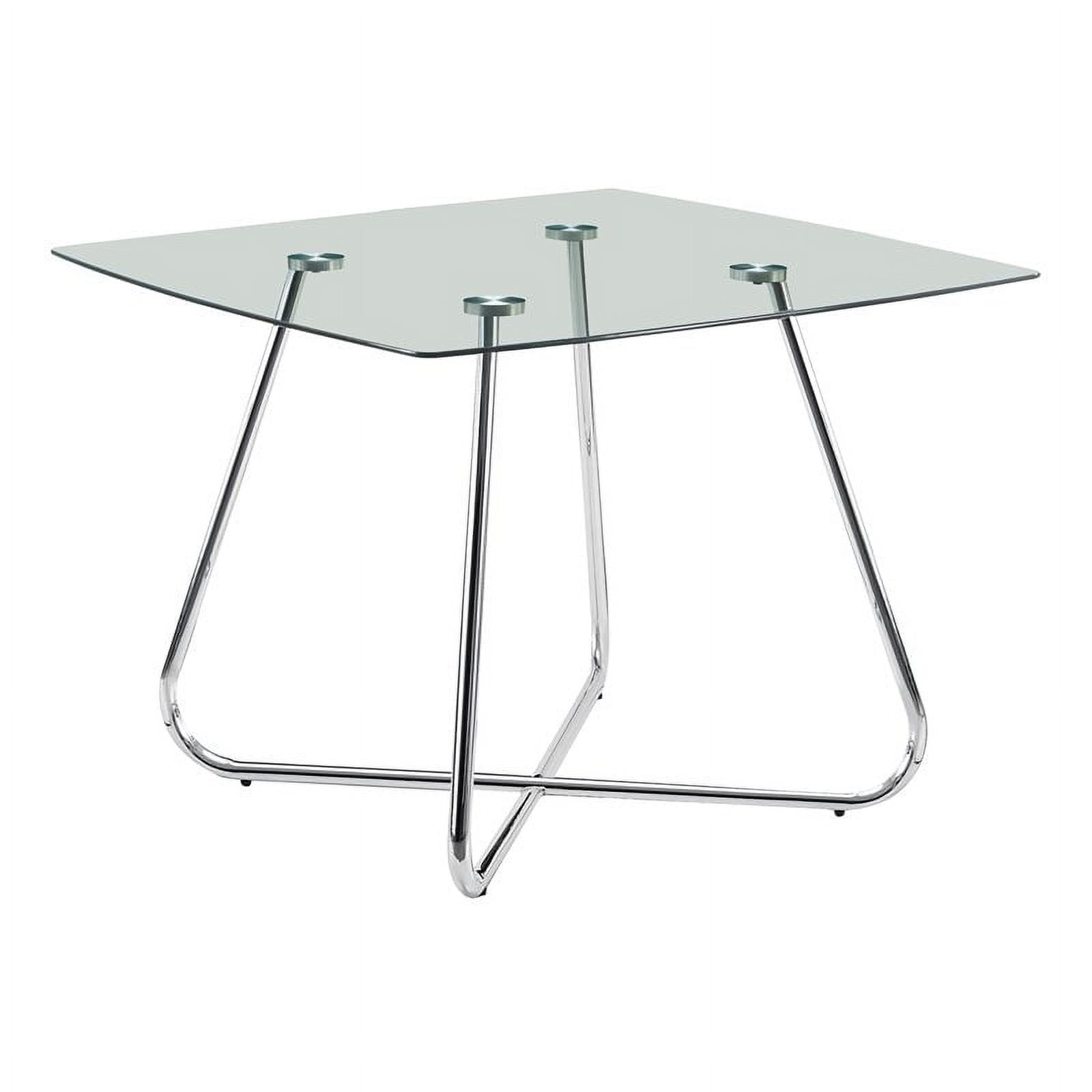 Dining Table, 48 Rectangular, Small, Kitchen, Dining Room, Chrome Metal Make meal time more interesting with the chic look of this contemporary styled dining table. The clear tempered glass top will help keep your dining space open and light while the silver chrome metal tubular base adds a modern touch that will keep you dining in style. Featuring smooth rounded edges from top to bottom this table can easily be paired with your choice of chairs and is ideal for smaller spaces lofts dining room or eat in kitchens. Modern contemporary styling Thick clear tempered glass top Chrome tubular metal base Smooth rounded edges Seats 4 comfortably – Material: Tempered Glass,Metal – Number of Pieces: 1 Pc – Style: Contemporary,Modern – Weight Capacity: 22 – Item Depth: 40 – Item Height: 31 – Item Dimensions: 40W x 40D x 31H – General Color: Clear – FINISHED ON ALL SIDES: YES – ITEM 1LBS: 51 – ITEM 1LENGTH: 40 – Vendor Color: Clear