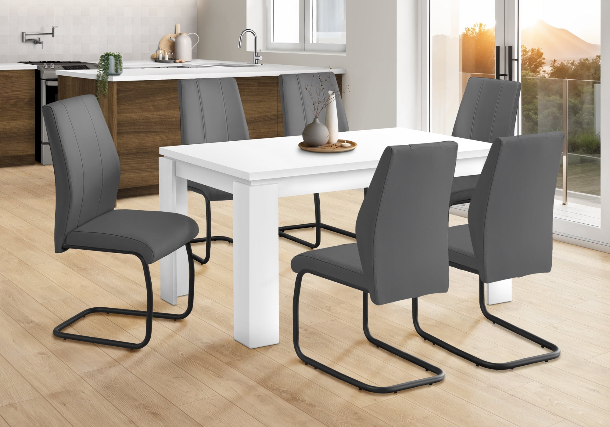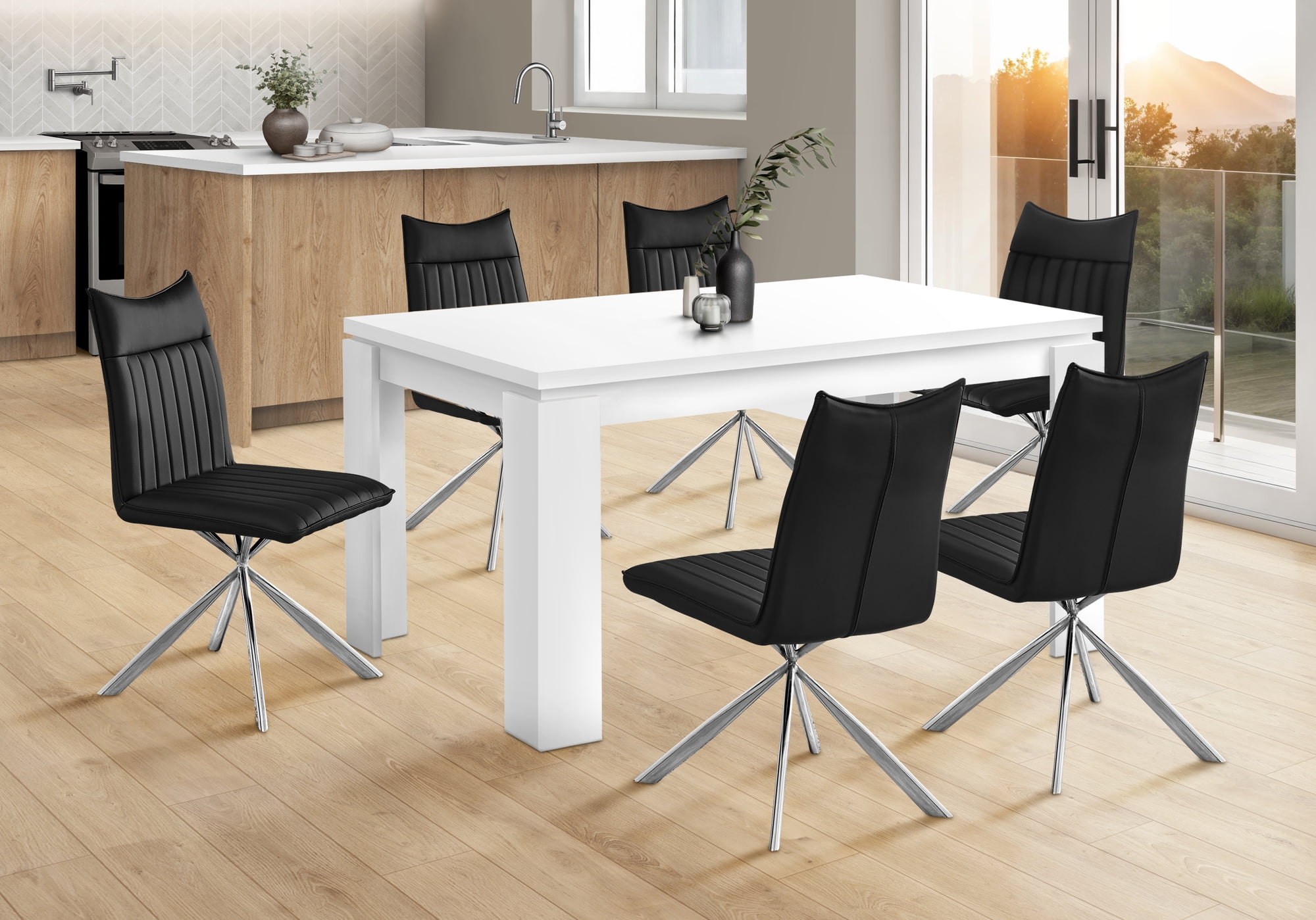 Looking for contemporary? You’re in the right place. This smooth white, thick-paneled kitchen table features a unique upscale surface to offer you the perfect unique style for your new place. The modern dining table also features thick, open block shaped legs to keep everything nice and sturdy. When it’s time to make a statement in your home, count on this kitchen table to do the trick in a casual or formal dining setting. Chairs sold separately. Features: Wood dining table in a smooth white finish with thick, block-style legs to keep everything in its place during large gatherings The thick panel construction makes for the perfect dining table Host with confidence, the kitchen table seats up to 6 people The dining room table is perfect in a casual or formal dining area Product Dimensions: 59 Inch L x 36 Inch D x 31 Inch H Specifications: Product Dimensions: 30″ H x 60″ W x 36″ D Product Weight: 77lbs