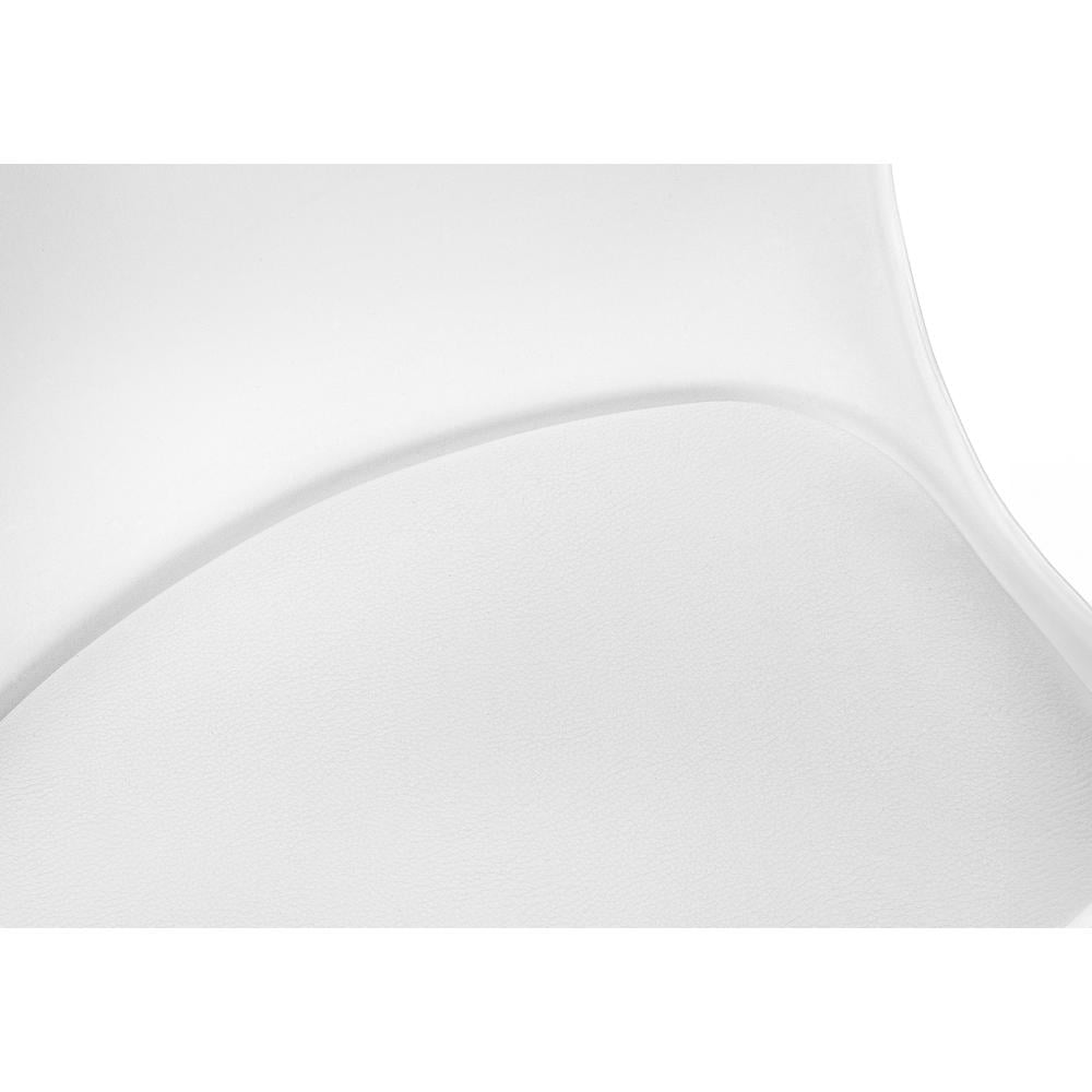 Materials: Metal, foam, polypropylene, polyurethane Finish: White Low-back office chair for kids in white with a white metal base Ergonomically designed backrest curves and is extra-wide to provide superior lower back support and the seat is padded for comfort 360-degree swivel seat and white 5-star base with hooded casters offer mobility, while an adjustable height mechanism allows the chair to be optimized for your child’s size Assembly required: Illustrated instructions and all hardware are provided for convenience (additional tools may be needed)