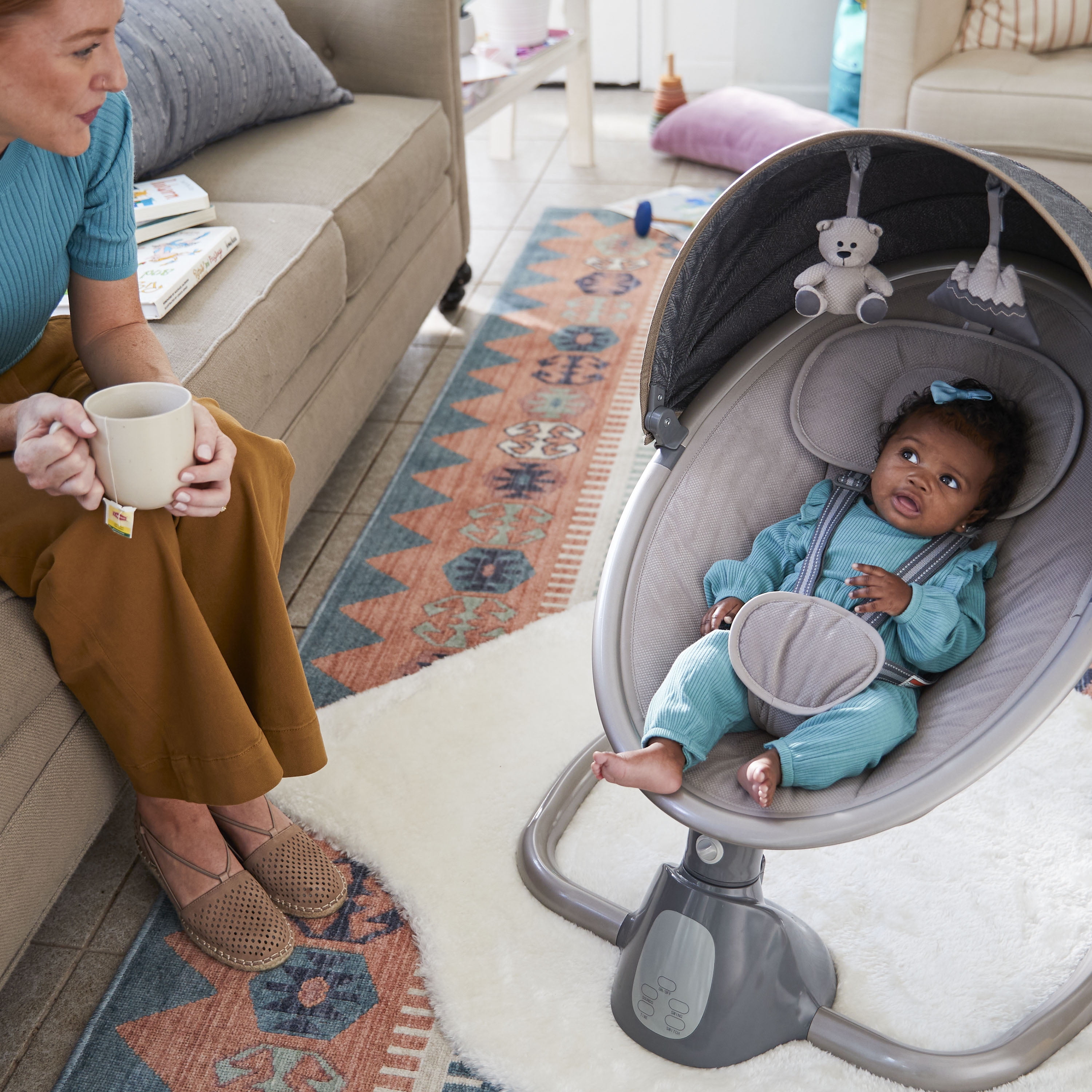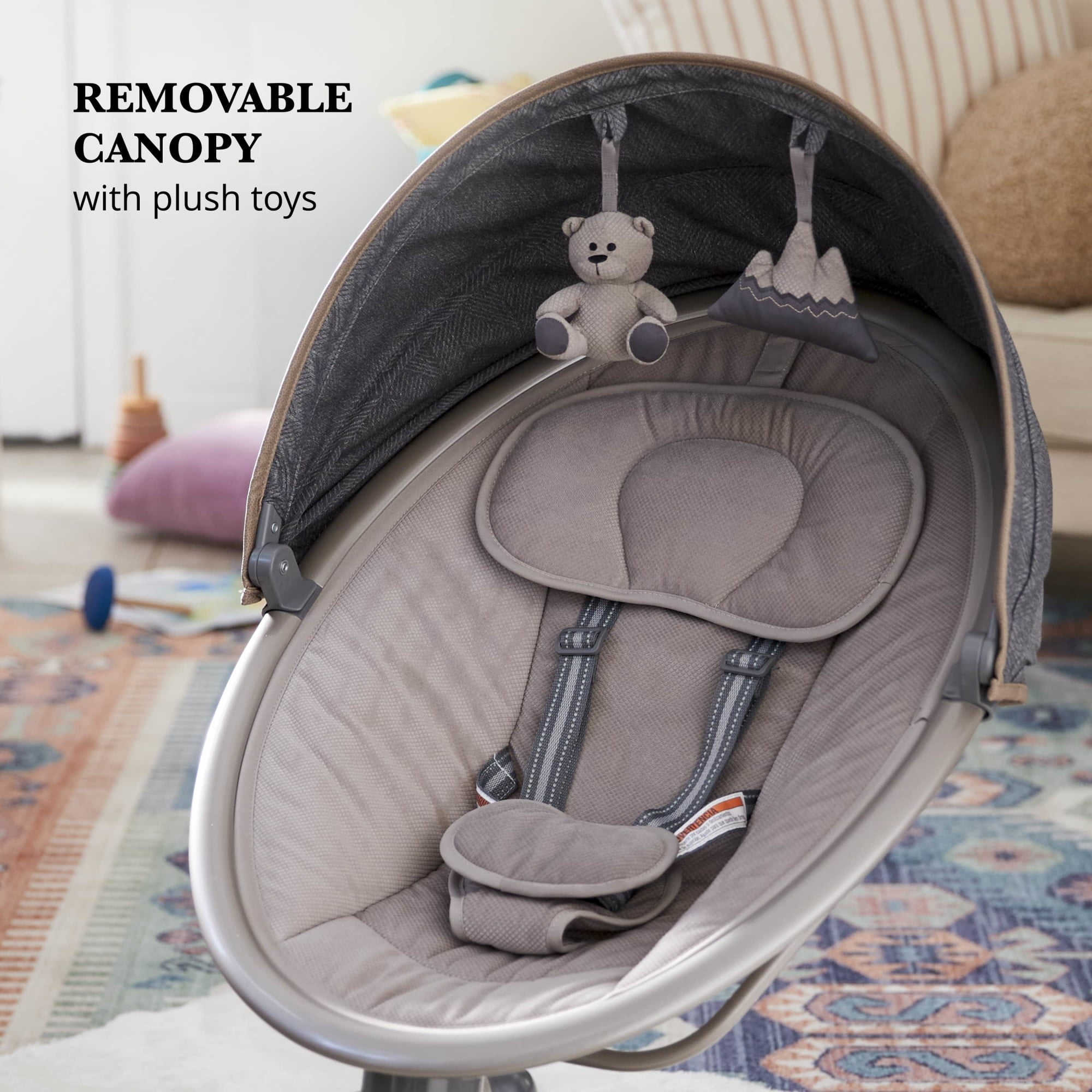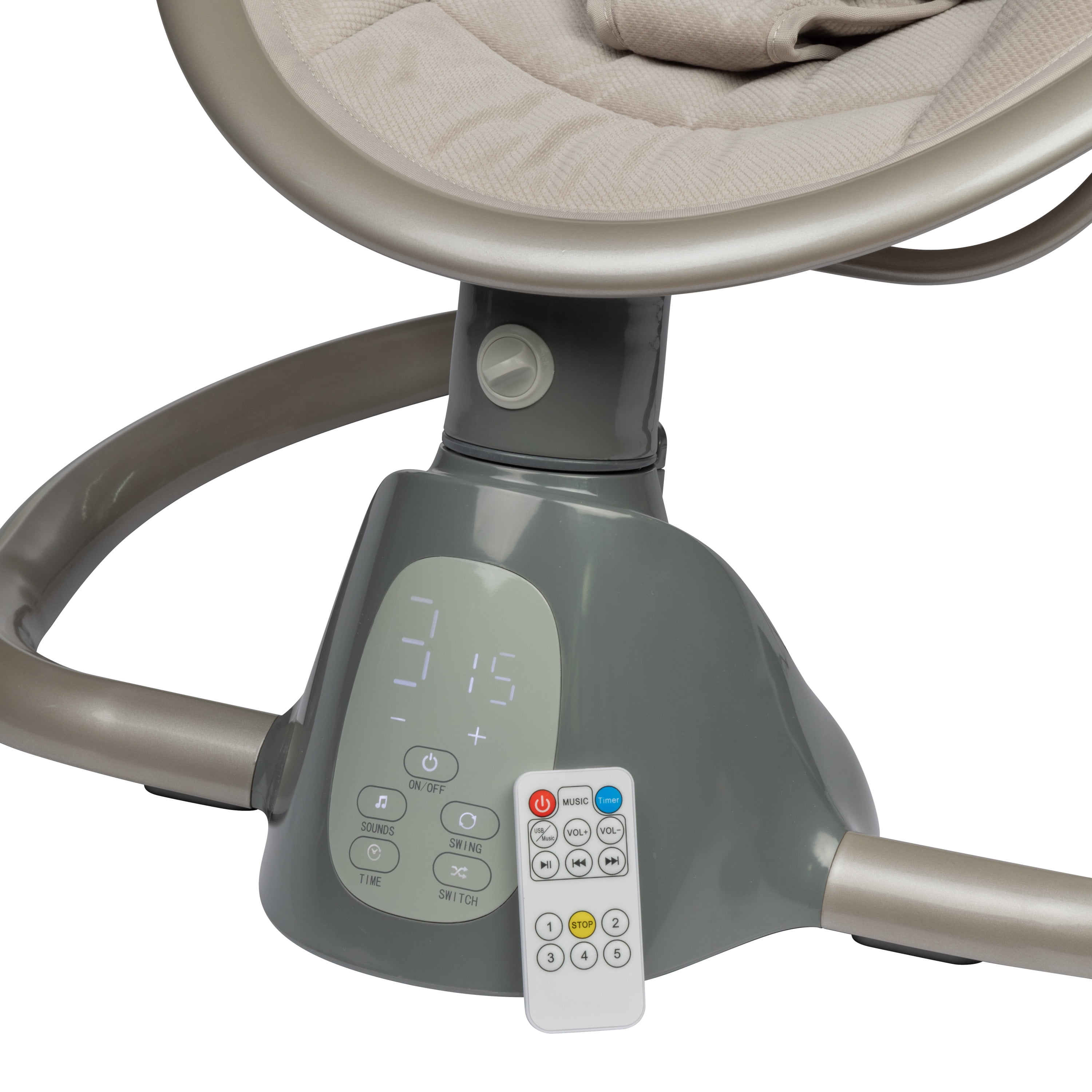 It’s time to get dinner started but your little one is fussing, your oldest child needs help with their homework, and of course, your partner is nowhere to be found. Let the Monbebe 5-Mode Swing with Bluetooth® be your answer whenever you find yourself wishing for an extra set of hands. A Smart Swing for Busy Parents: With its Bluetooth-enabled digital touch screen and remote control, you’ll be able to quiz your oldest on spelling words while easily changing the baby swing’s speed or built in music with the remote, or play your baby’s favorite songs from your smart phone while the swing is in bluetooth mode. Remarkable Comfort and Safety: This exceptional baby swing also features a deep seat with incredibly plush fabric for baby’s comfort, a removable canopy with plush toys to entertain your little one, a removable infant pillow, and an adjustable 5-point safety harness for your peace of mind. Plenty of Options to Soothe Your Little One: The Monbebe Tranquility Swing offers 5 different speeds, 10 built-in soft melodies, and 3 set timers to soothe your little one at their fussiest. Our Commitment to Children Worldwide: Monbebe has partnered with Watsi to help support life changing surgeries for children around the world. Learn more by visiting .