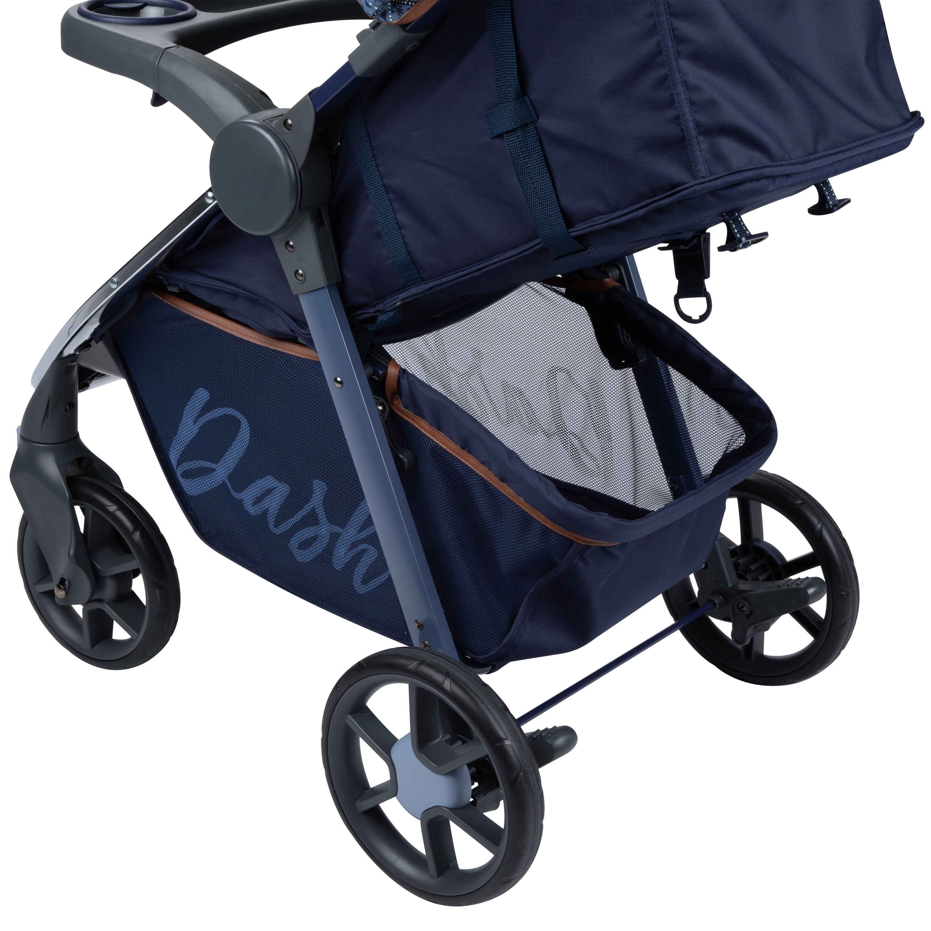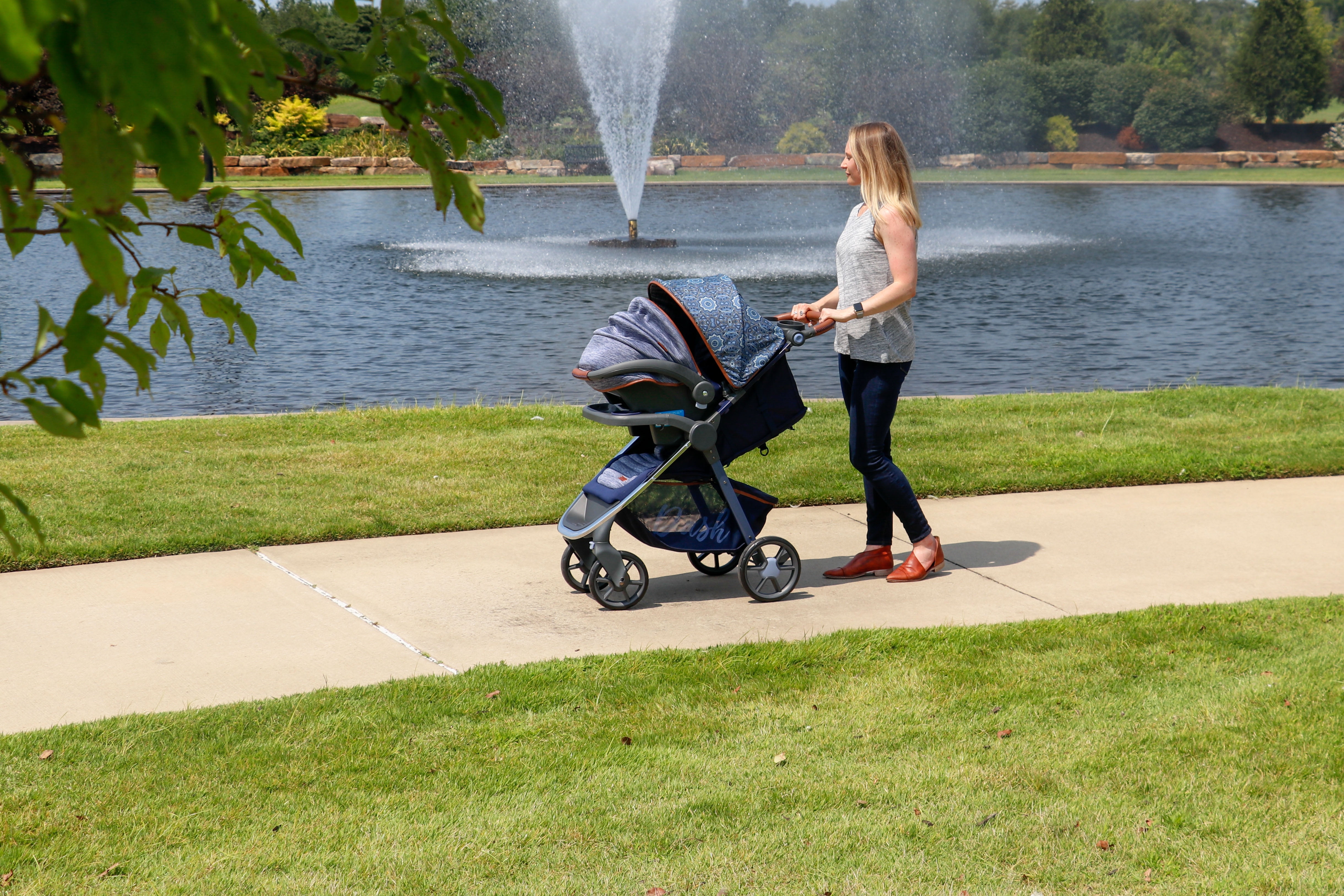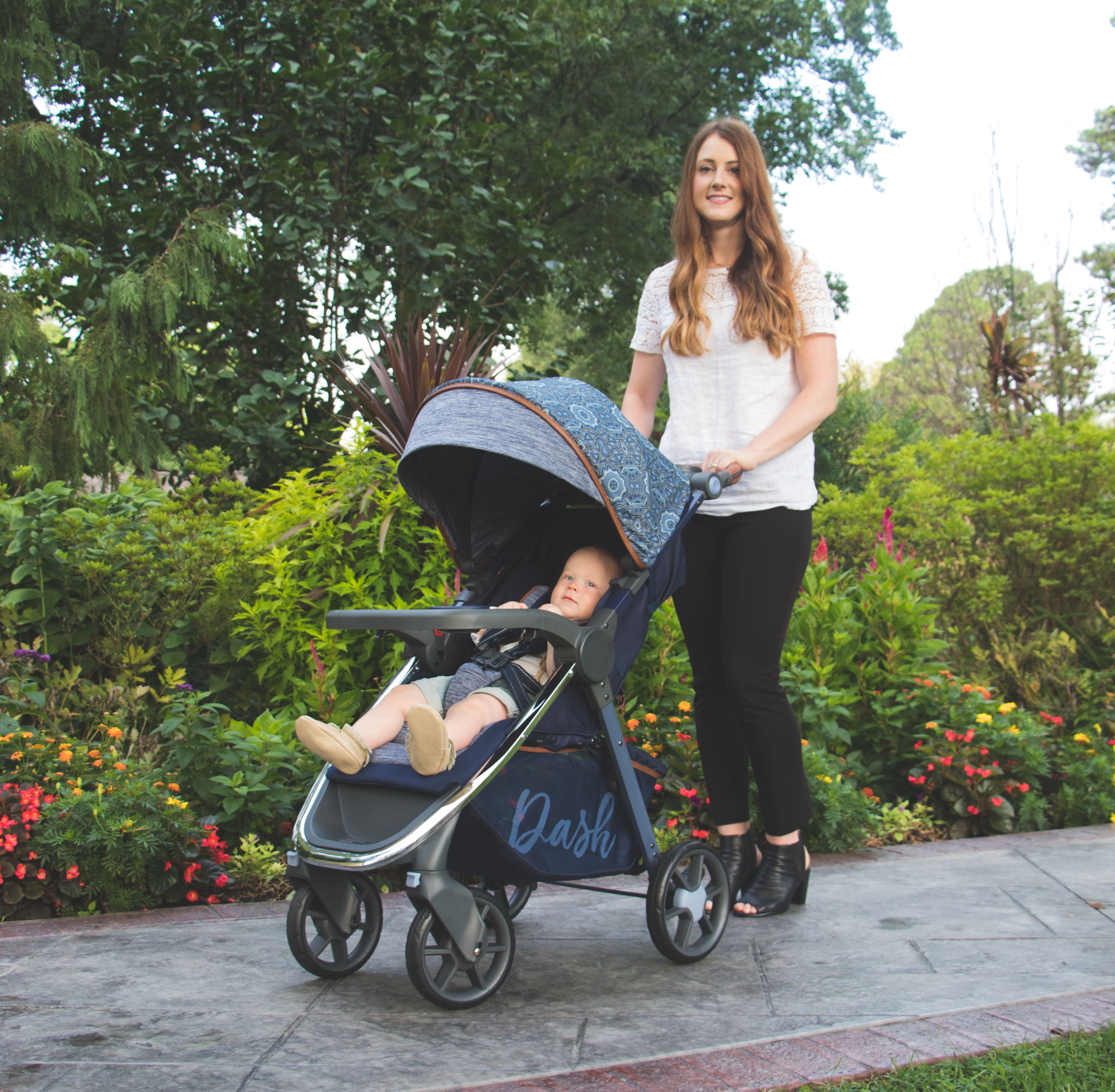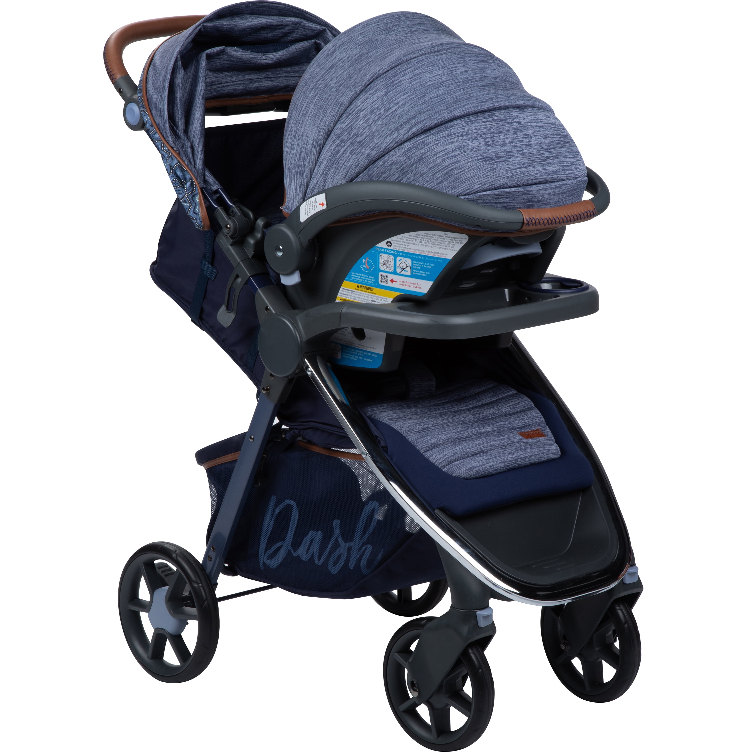 The Monbebe Dash All-in-one Travel System includes a stroller and a Safety 1st onBoard 30 LT infant car seat with a 5 point front-adjust harness, infant insert, and car seat base. This all-in-one system features a multiple-position reclining stroller seat with enhanced details, including true memory foam on both the stroller and infant car seat for added comfort for baby. The fashionable Dash Travel System features a stylish frame with chrome accents, a four-wheel design, plus an adjustable faux leather grip handle for added comfort for you while steering the stroller or holding the infant car seat. The Dash stroller features a foot brake, multiple-position reclining seat for baby, and a one hand lift to fold, which makes it easy and convenient for you to collapse and store in the car or home. The Monbebe Travel System includes two important safety features by offering a five-point harness with comfort pads for your child’s security and safety and a large canopy with a sun visor, which keeps unwanted UV rays away from your child, along with a peek-a-boo window on top to check on baby. The Dash travel system offers you many conveniences with a removable child tray, covered storage compartment, and parent tray with two cup holders, as well as a generous storage basket that provides the necessary locations to carry or hold it all. The Monbebe Dash Travel System is also available in Gray and Black Pinstripe and comes with a 1 Year Limited Warranty. Monbebe and Watsi have partnered to help support life changing surgeries for children. Learn more about how your purchase helps by visiting .