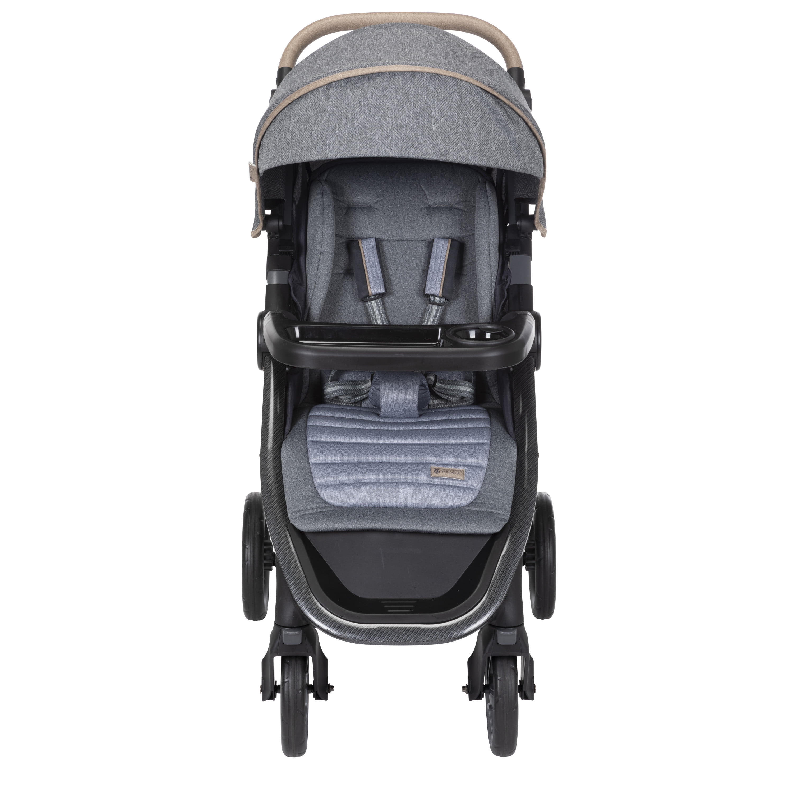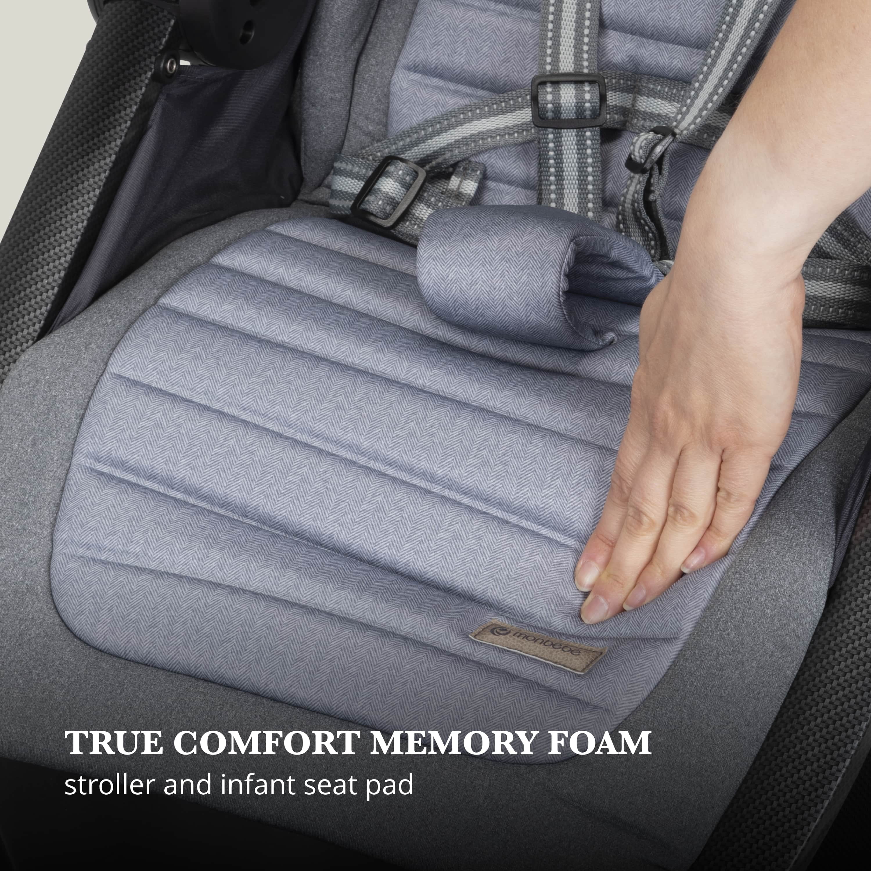 Adventure meets modern style with the Monbébé Maisy Deluxe Travel System. This all-in-one travel system with a stroller in a chic, modern design with a high-shine frame. The extra-large canopy and extended sun visor keep baby safe from the weather during your travels, while the wide peekaboo window offers plenty of ventilation. The memory-foam seat pad can be manually reclined for multiple degrees of comfort and lifts easily for a 1-hand fold when it’s time to pack up. This customization extends to the adjustable handle with faux-leather grip and beautifully detailed stitching. Its front wheels lock for greater stability should the road get rough. Stroller accommodates children up to 50 lbs. Included alongside the stroller is the Safety 1st® onBoard™ LT Infant Car Seat, one of the lightest infant car seats available that is not only easy to carry, but comfortably accommodates your little one from 4–30 lbs. with a memory foam seat pad of its own. Each Monbébé Maisy Deluxe Travel System incorporates even more handy features such as the stroller’s dual parent cup holders, a removable child tray that opens on both sides, anti-bacterial treatment on all fabrics and handles for both the stroller and infant car seat handles, and an oversized storage basket with a solid back layer providing added support to all your baby travel essentials. Monbébé has partnered with Watsi to help support life changing surgeries for children around the world.