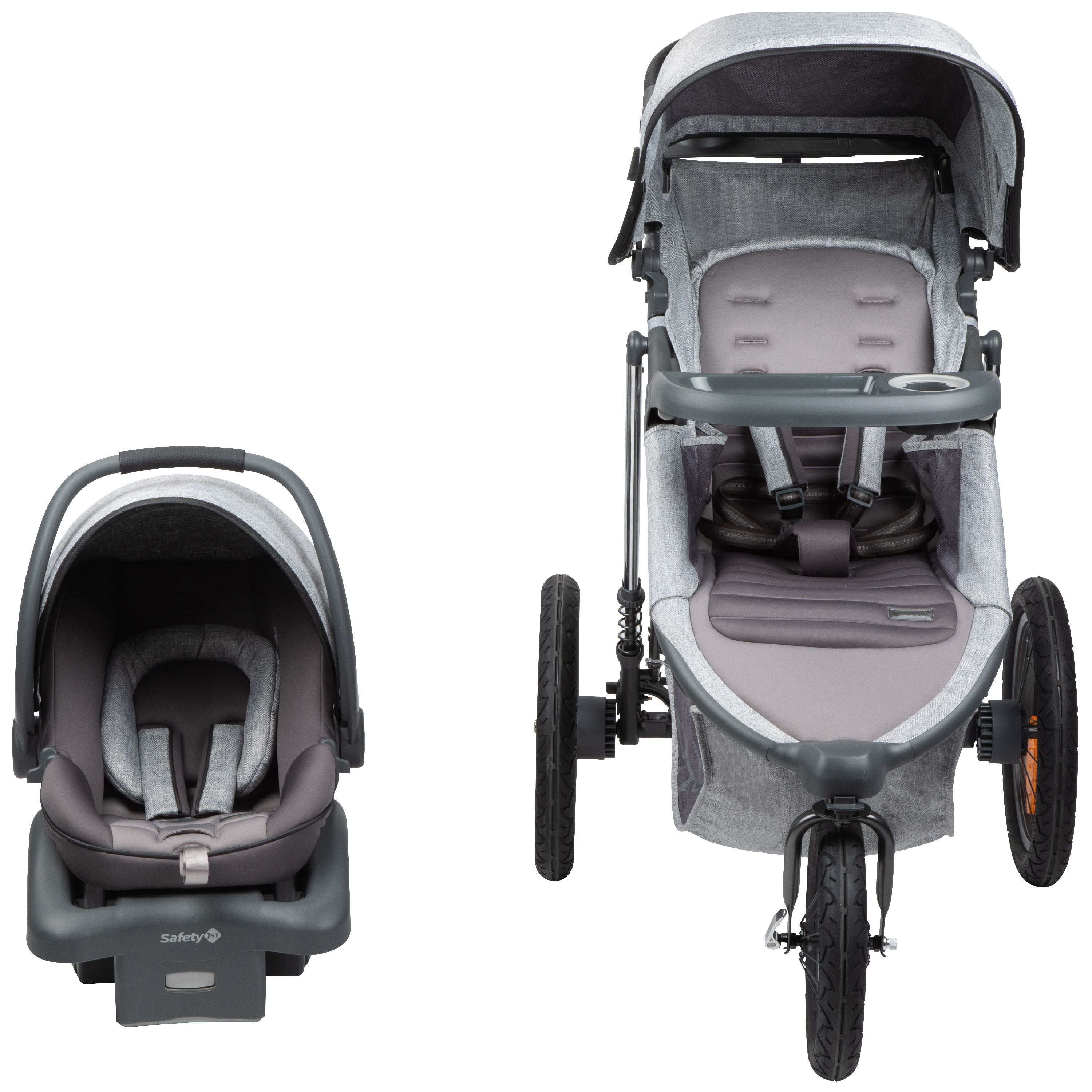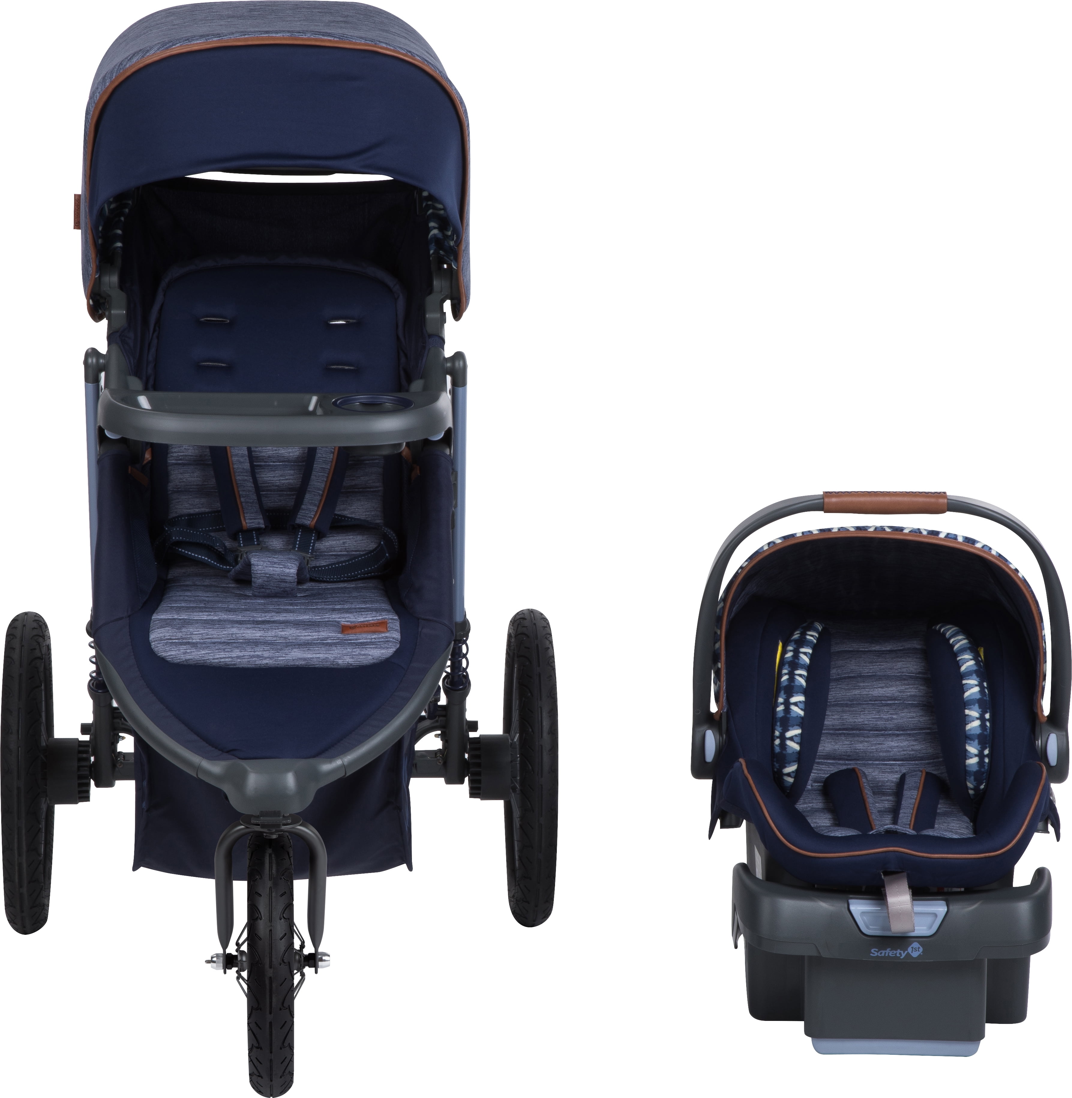 The Monbebe Rebel ll All in One Travel System includes a jogging stroller and a Safety First on Board 35 LT infant car seat with 5 pt front-adjust harness, infant insert and car seat base. The stroller features multiple position reclining seat with enhanced details including true memory foam for added comfort seating for baby. The fashionable Rebel ll travel system while stylish to the eye has optimal functionality that includes a foot brake, all terrain, air filled bicycle tires that have performance shocks to provide a smooth ride while the lockable swivel wheel supports maneuverability and an easy transition from jogging to strolling-along with polished wheel ball bearings that reduce rolling resistance. Adjustable faux leather grip handles have been applied for your added comfort while steering the stroller or holding the infant car seat. The Monbebe travel system includes two important safety features by offering a five-point harness with comfort pads for your child security and safety while the Extra -large Retractable canopy with sun visor keeps unwanted UV Sunrays away from your child. The Rebel II stroller features a one hand lift to fold which makes it easy and convenient for you to collapse and store in the car or home. The Rebel ll travel system includes conveniences with a removable child tray, covered storage compartment and parent tray with cup holders and storage basket provide the necessary locations to carry or hold it all. The Monbebe Rebel ll Travel system is also available in Navy Bohemian & Gray and Black Pinstripe. Monbebe and Watsi have partnered to help support life changing surgeries for children.