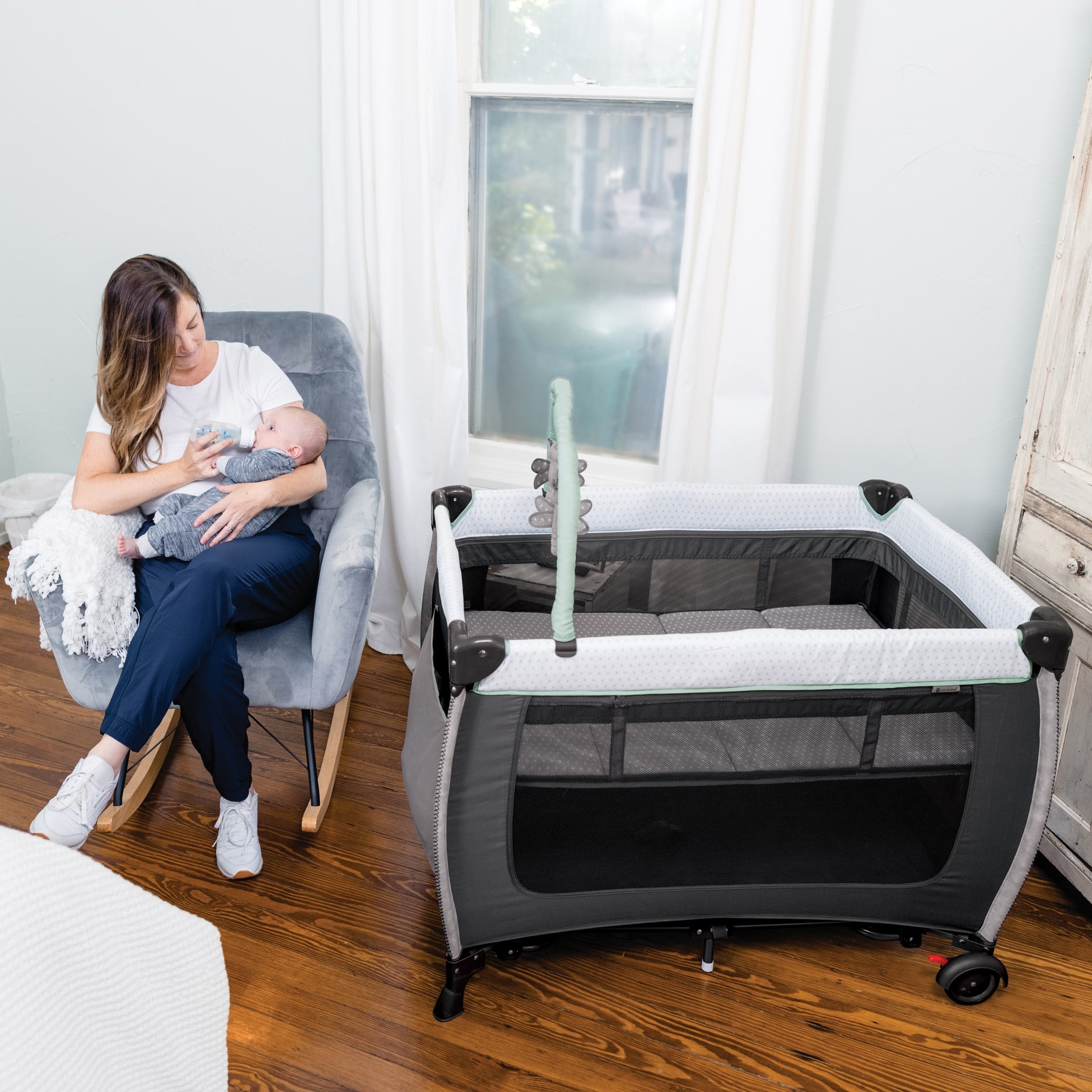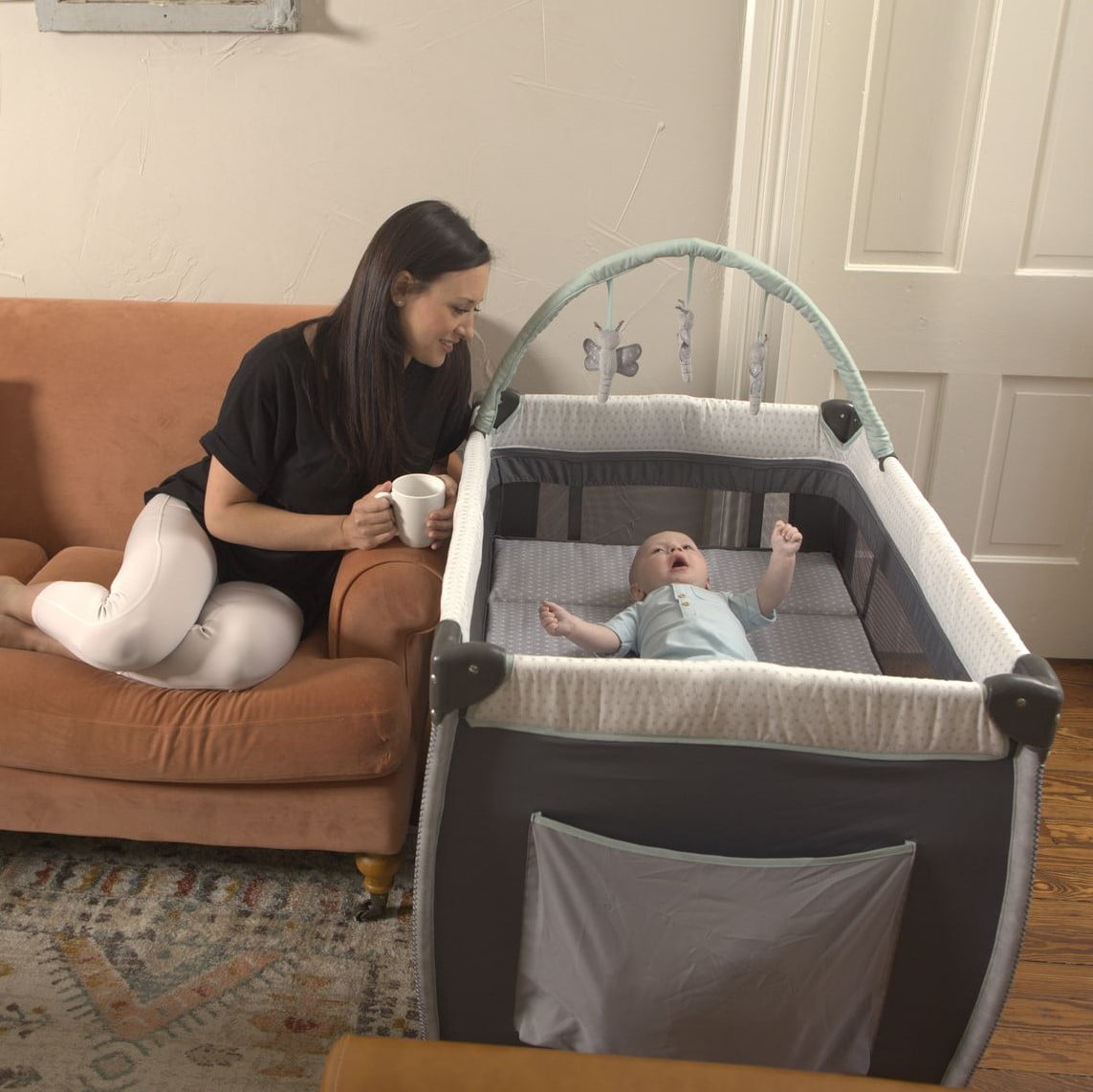 As a new parent with a minimalist lifestyle, you want the most practical, space saving solutions for your new little one and that’s where the Monbebe Willow Rocking Play Yard is truly a champion. A Chic Rocking Bassinet and Play Yard in One With its full size, zip in bassinet and rocking or stationary options, you won’t have to choose between a rocking baby bassinet or a traditional play yard to keep your growing sprout corralled. The Willow’s bassinet also attaches without plastic hooks that most play yards use, offering a much softer and more fashionable look. The Only Baby Furniture You Need The Willow Rocking Play Yard is truly an all-in-one piece of baby furniture as it not only offers a comfortable place for your newborn to sleep, it also includes a removable, wipeable changing table as well as a deep side pocket to store a few diaper changing essentials. Entertainment at Home and On the Go This brilliant play yard also includes a removable toy bar with adorable plush toys to keep baby entertained, and if traveling with your little one is in the future, a convenient carry bag is also included so you can bring the Willow right along with you. Practical and Stylish Clearly, the Monbebe Willow Rocking Play Yard is a pragmatic and stylish solution for your minimal baby furniture needs. Our Commitment to Children Worldwide Monbebe has partnered with Watsi to help support life changing surgeries for children around the world. Learn more by visiting . This product is designed with a firm, flat sleeping surface that meets the Consumer Product Safety Commission’s recommendations for safe sleep.