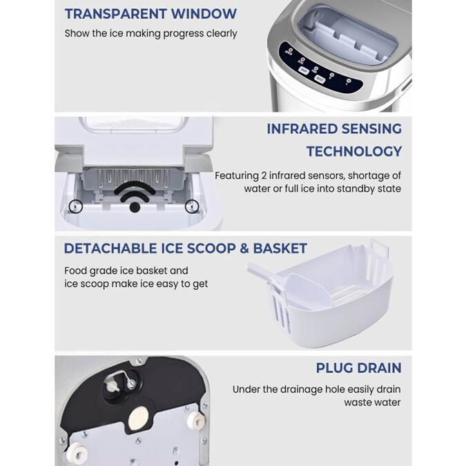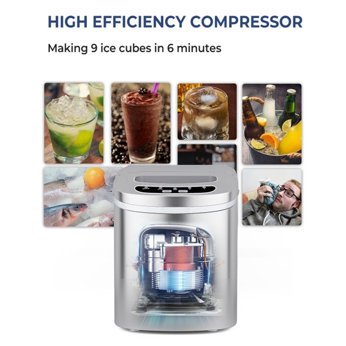 • Portable Compact Size and Low Noise Running: With a quiet compressor that requires low energy to cool and its space-saving design, this ice maker will be a great addition to your bar or countertop