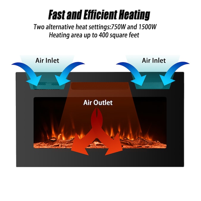 • This product comes with two heating modes 750W and 1500W to heat area up to 400 square feet effectively,also fireplace can be used without heater