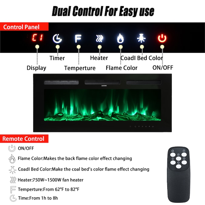 - Full spectrum LED colors for a unique resin logs ember bed display-5 flame brightness levels, 12 flame and LED flame bed color modes, 1-8H timer setting