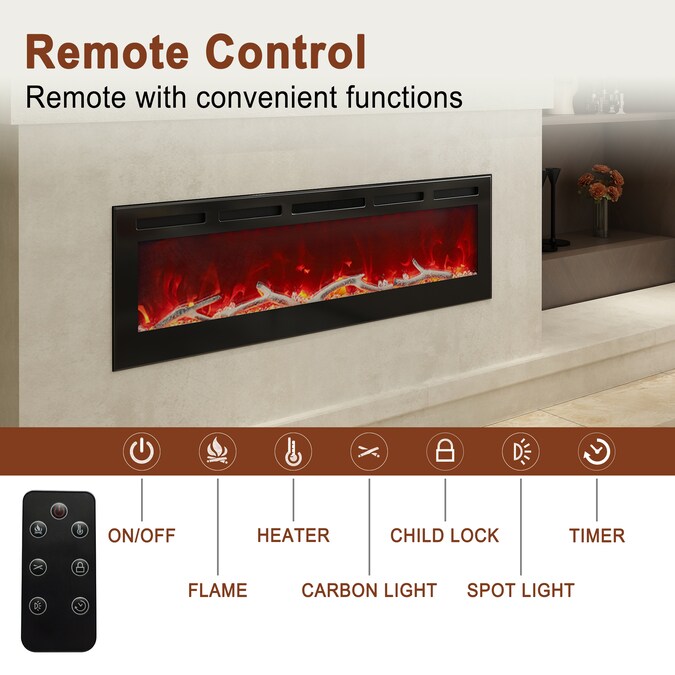 This electric fireplace is designed for wall-mounted/recessed in-wall mounting. Creating a cozy atmosphere of a traditional fireplace, this electronic fireplace has realistic flames with a real fire look. The mult flame settings radiate a soft ember glow up to an intense blaze. Control the heat and flame with the remote control or touch screen. A bit more homey and interesting to your room, it is the excellent choice, whether you want it for aesthetic or heat purposes.