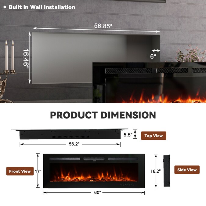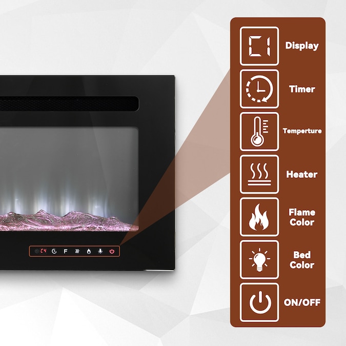 - Full spectrum LED colors for a unique resin logs ember bed display-5 flame brightness levels, 12 flame and LED flame bed color modes, 1-8H timer setting