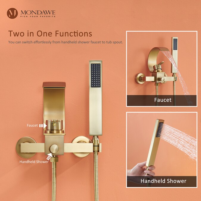 - Premium Material Construction: This shower tub kit is made of solid brass body, durable zinc alloy handle and stainless steel spout and handshower.