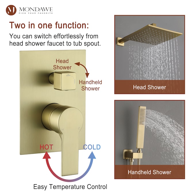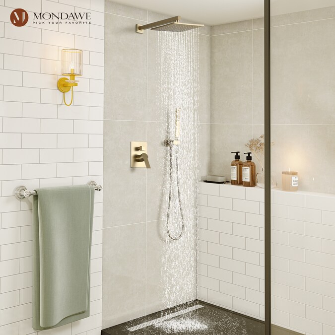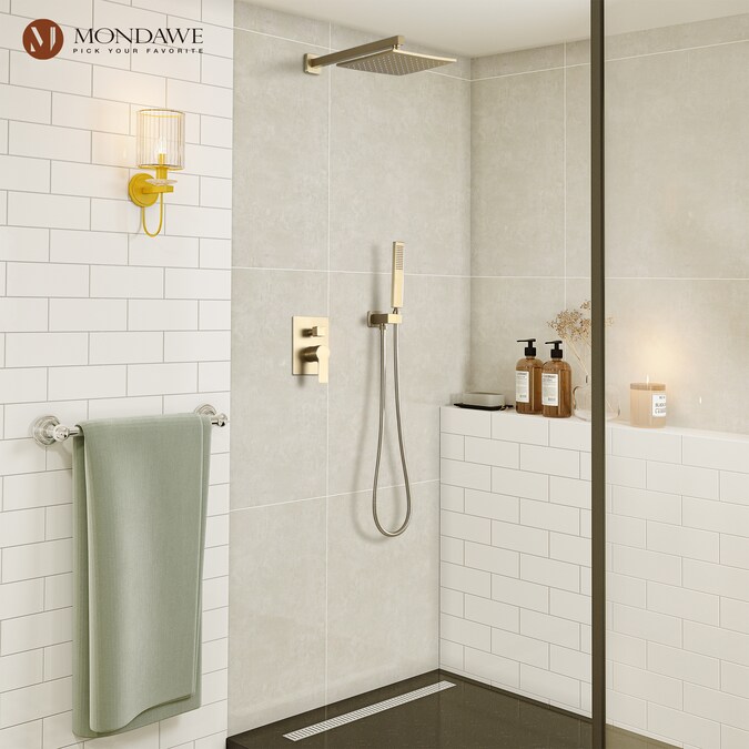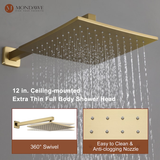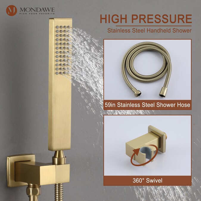 Mondawe Brushed Gold 10-in Waterfall Dual Head Built-In Shower Faucet System with 2-way Diverter (Pressure-balanced Valve Included)